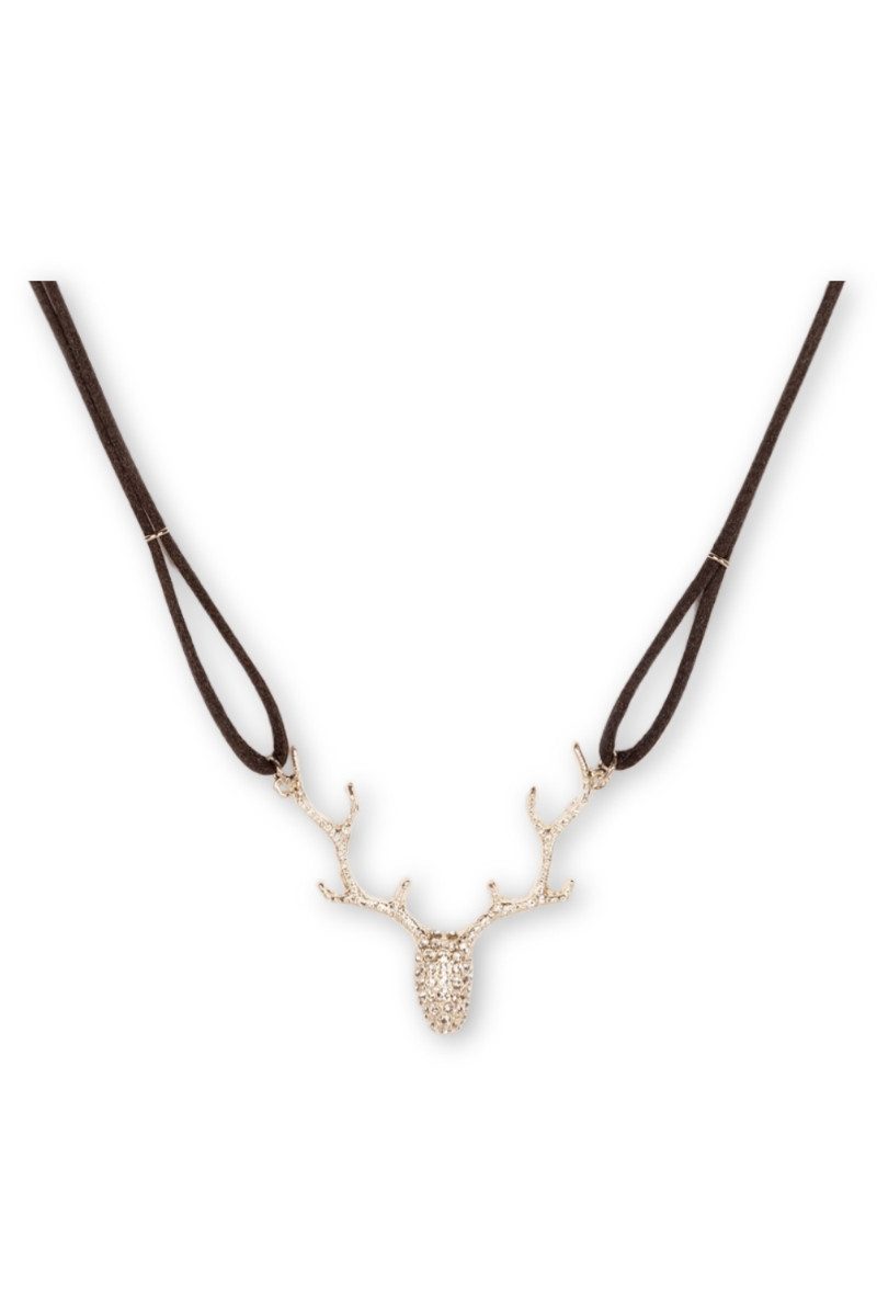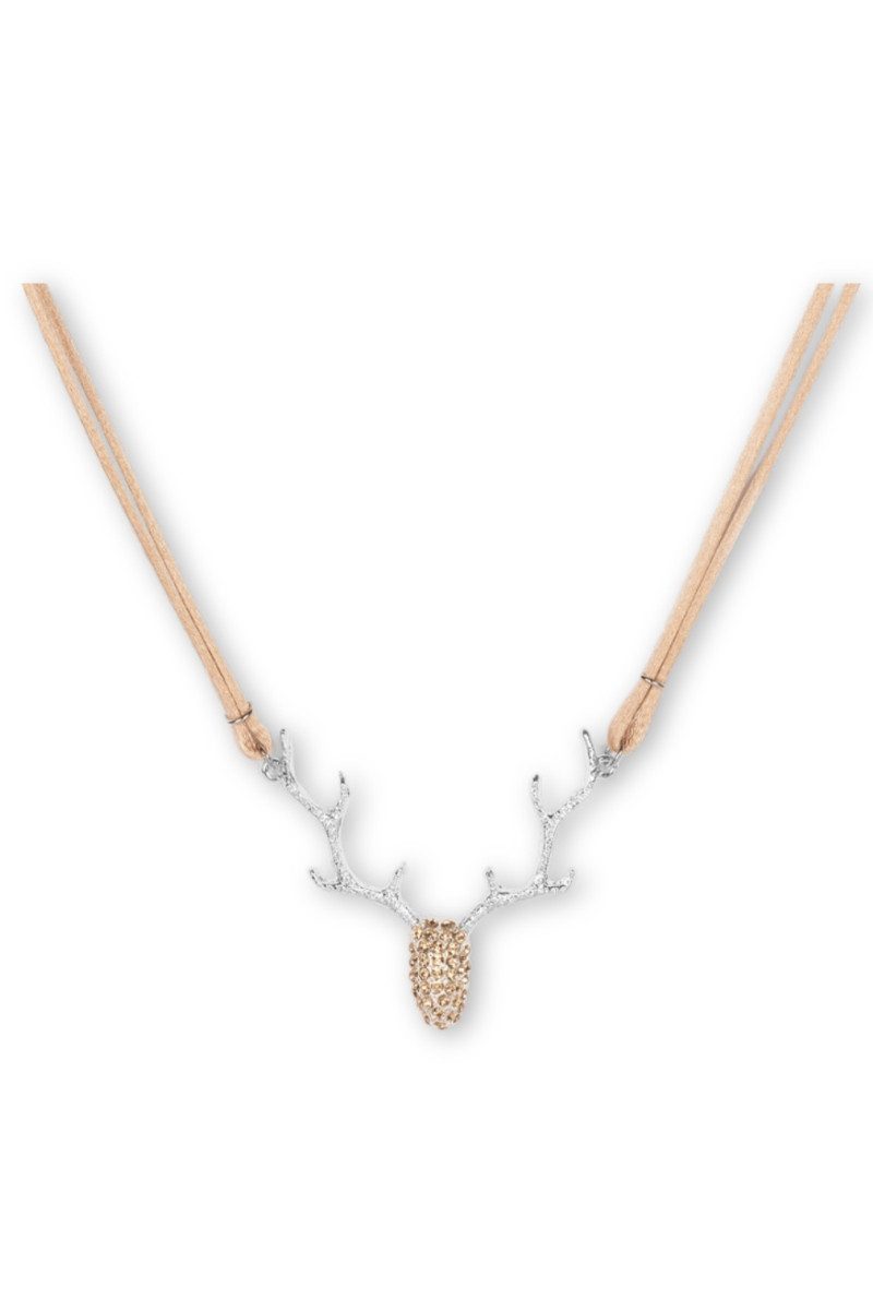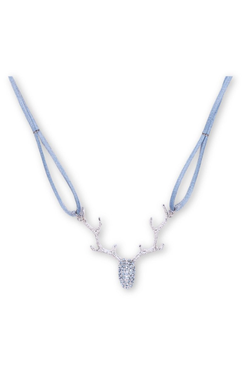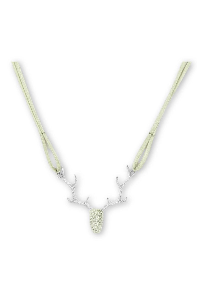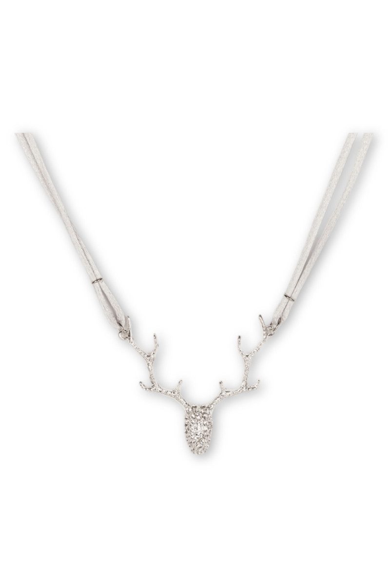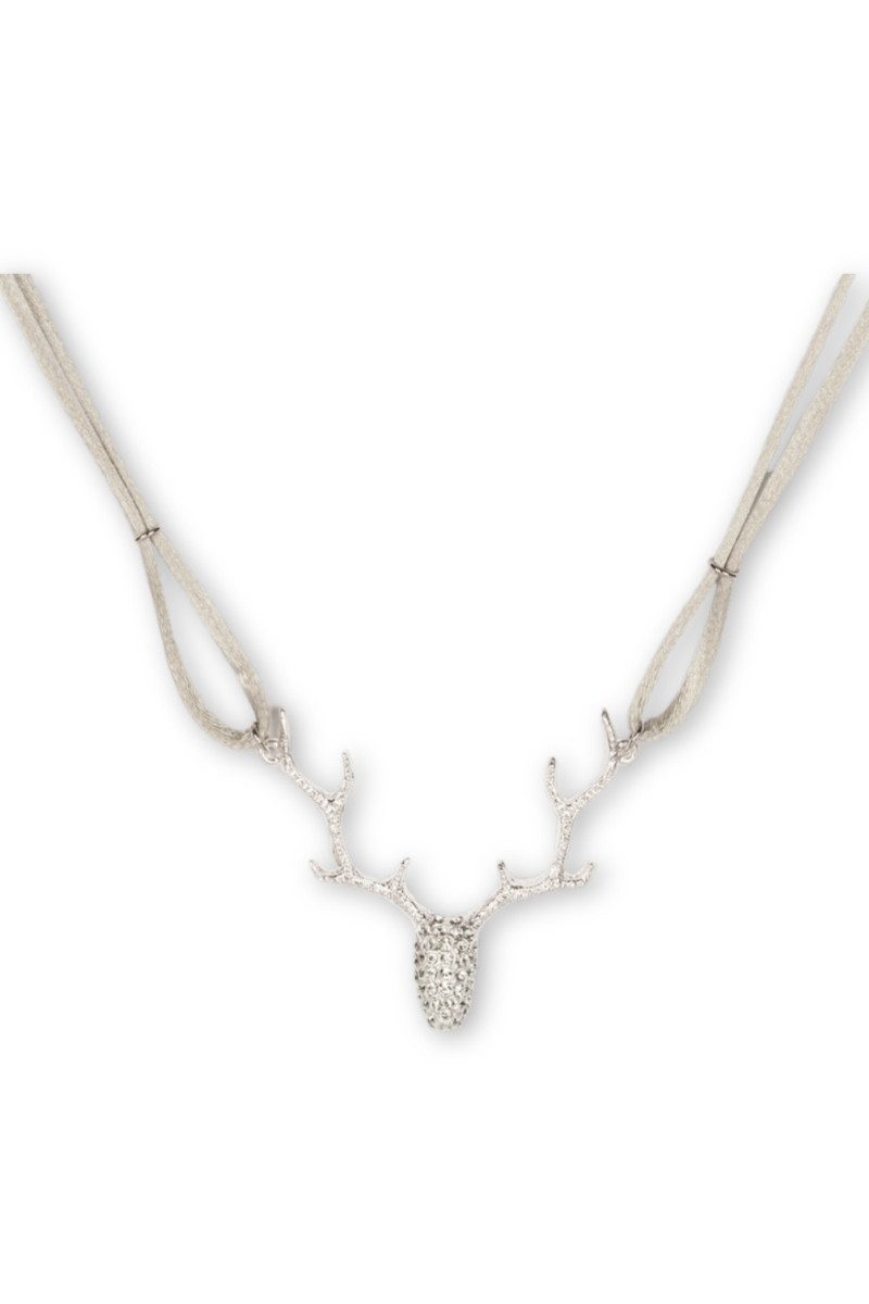 Ein elegantes Trachtencollier, welches alle Blicke auf sich zieht. Das Glanzstück zaubert ein verführerisches Dekolleté! Mit seinem funkelnden, versilberten Anhänger in Geweihform und bestückt mit vielen echten Swarovski-Steinen ist das Trachten Collier etwas ganz besonderes. Das hübsche doppelt gelegte Satinband trägt nobel in wundervollen Farben dazu bei. Mit dem Verlängerungskettchen ist die Kette in der Weite individuell regulierbar. Die Trachtenkette ist ein exklusiver Markenschmuck der Schmuckwerkstatt Herbert Hahn.