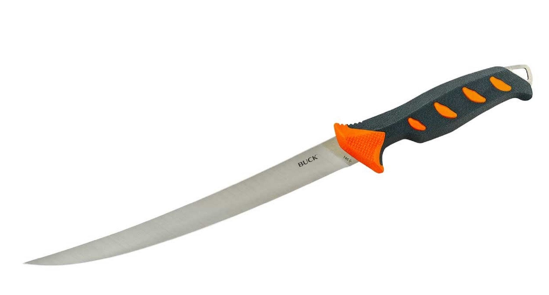 Mit dem 146 HOOKSET 9 präsentiert Buck ein praktisches Süßwasser Filetiermesser. Eine Klinge aus 5Cr15MoV rostfreiem Stahl gewährleistet hervorragende Schnitteigenschaften. Der ergonomisch angelegte Griff aus glasfaserverstärktem Polypropylen mit TPE- Gummi und Fangriemenöse bietet maximalen Grip und ermöglicht so auch das Filetieren unter widrigsten Bedingungen.