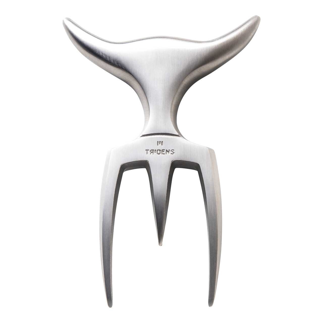Die neue Fleischgabel des französischen Herstellers Tridens wird in der Nähe von Nantes hergestellt. Ähnliche, aber doch sehr rustikale Fleischgabeln kommen schon seit langer Zeit in Südamerika zum Einsatz. Das moderne Design im französischen Stil dieser Fleischgabel kommt aus der Feder von Michel Chaillou, Professor der Hochschule für Design in Nantes. Teilweise recycelter, rostfreier 316L Stahl wird als Gussteil in seine innovative Form gebracht und in Handarbeit aufwendig gebürstet. Die ergonomische Form kann gleichermaßen von Links- und Rechtshändern genutzt werden. Zur attraktiven Präsentation ist ein Buchenholzbrett mit Löchern für Salz und Pfeffer im Lieferumfang bereits enthalten. Ein echter Hingucker auf jedem Tisch oder beim BBQ.