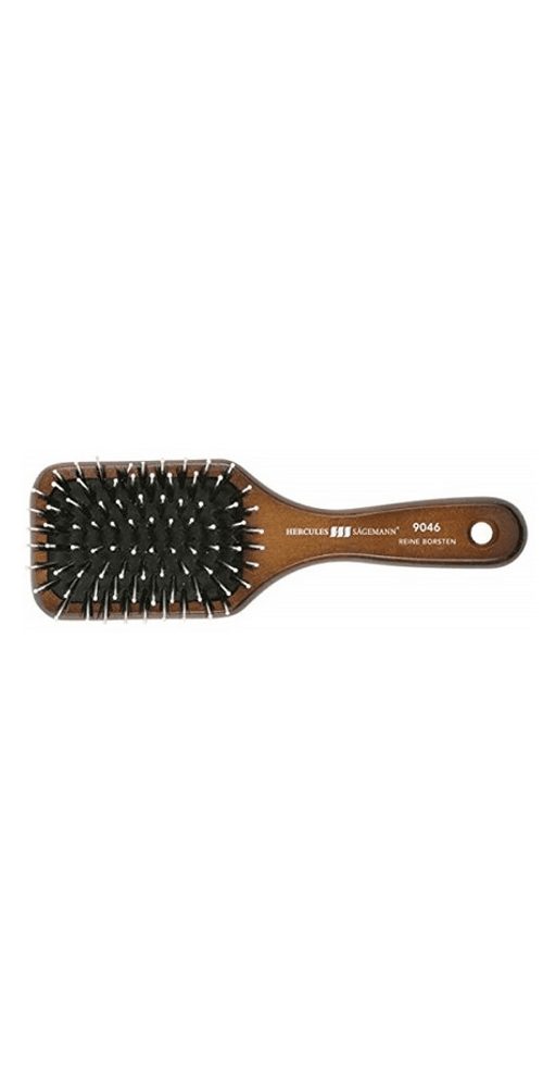 Hercules Holzbürste 9046 Dunkel Die Hercules Holzbürste 9046 ist eine Flachbürste mit Natur- und Polyamidborsten (Nylon). Die Polyamidstifte massieren sanft die Kopfhaut, verbessern die Blutzirkulation der Kopfhaut und entwirren das Haar. Ideal! Nach der Verwendung dieser Bürste werden die natürlichen Öle durch das Haar verteilt und das Haar sieht glatt und glänzend aus. Das Gummikissen, das die Borsten hält, sorgt für eine sanfte Kopfhautmassage. Die Bürste enthält 8 Borstenreihen. Dank ihres ergonomischen Designs ist diese Bürste sehr bequem im Gebrauch und liegt gut in der Hand. Der Holzgriff stammt aus erneuerbaren Quellen und ist daher sehr langlebig. Die Stifte aus Polyamid sind außerdem hitzebeständig. Produkteigenschaften Hercules Holzbürste 9046 Dunkel * Flach-/Paddelbürste * Natur- und Polyamidborsten * Massiert und stimuliert den Blutkreislauf * Entwirrt * Verteilt die natürlichen Öle * Macht das Haar glatt und glänzend. * 8 Borstenreihen * Ergonomisches Design * Griff aus Holz * Hitzebeständig