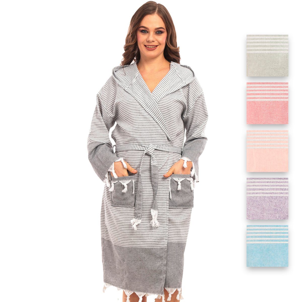 Entdecke deinen neuen Lieblingsbademantel! Der HERÉMOOD Bademantel für Damen & Herren überzeugt im stilvollen Hamamtuch-Stil – gefertigt aus 100 % reiner Baumwolle, besonders weich, saugfähig und angenehm auf der Haut. Ideal nach Sauna, Bad oder Dusche – zu Hause oder unterwegs.