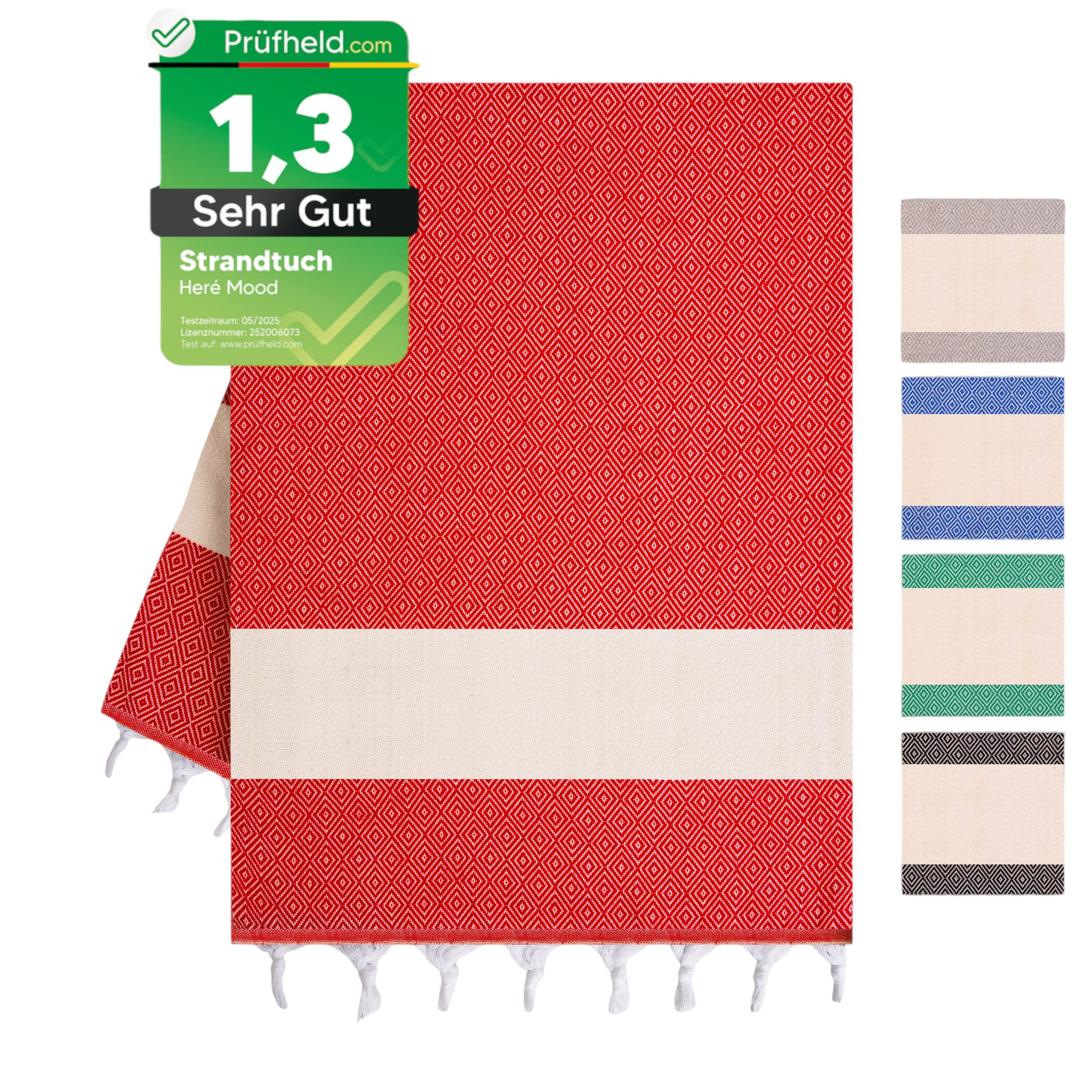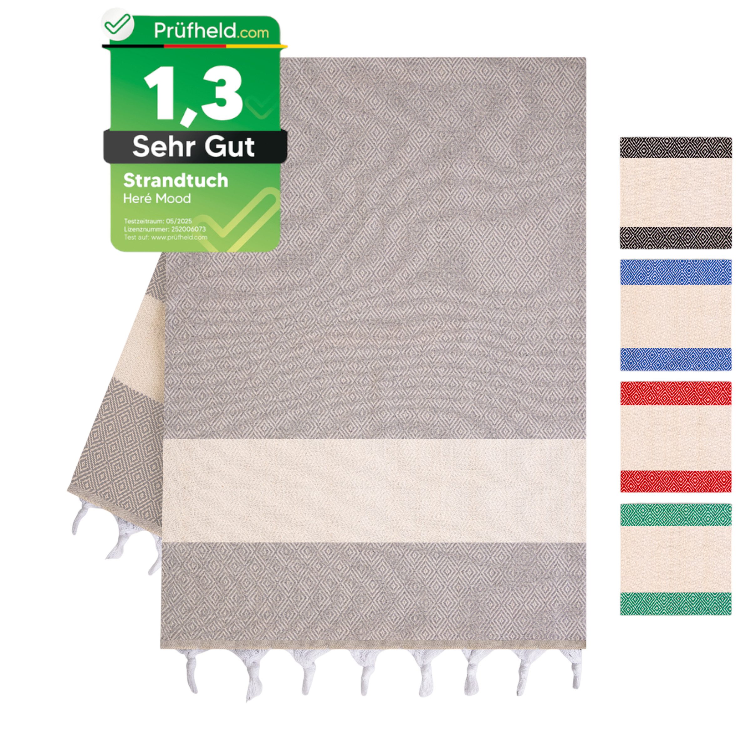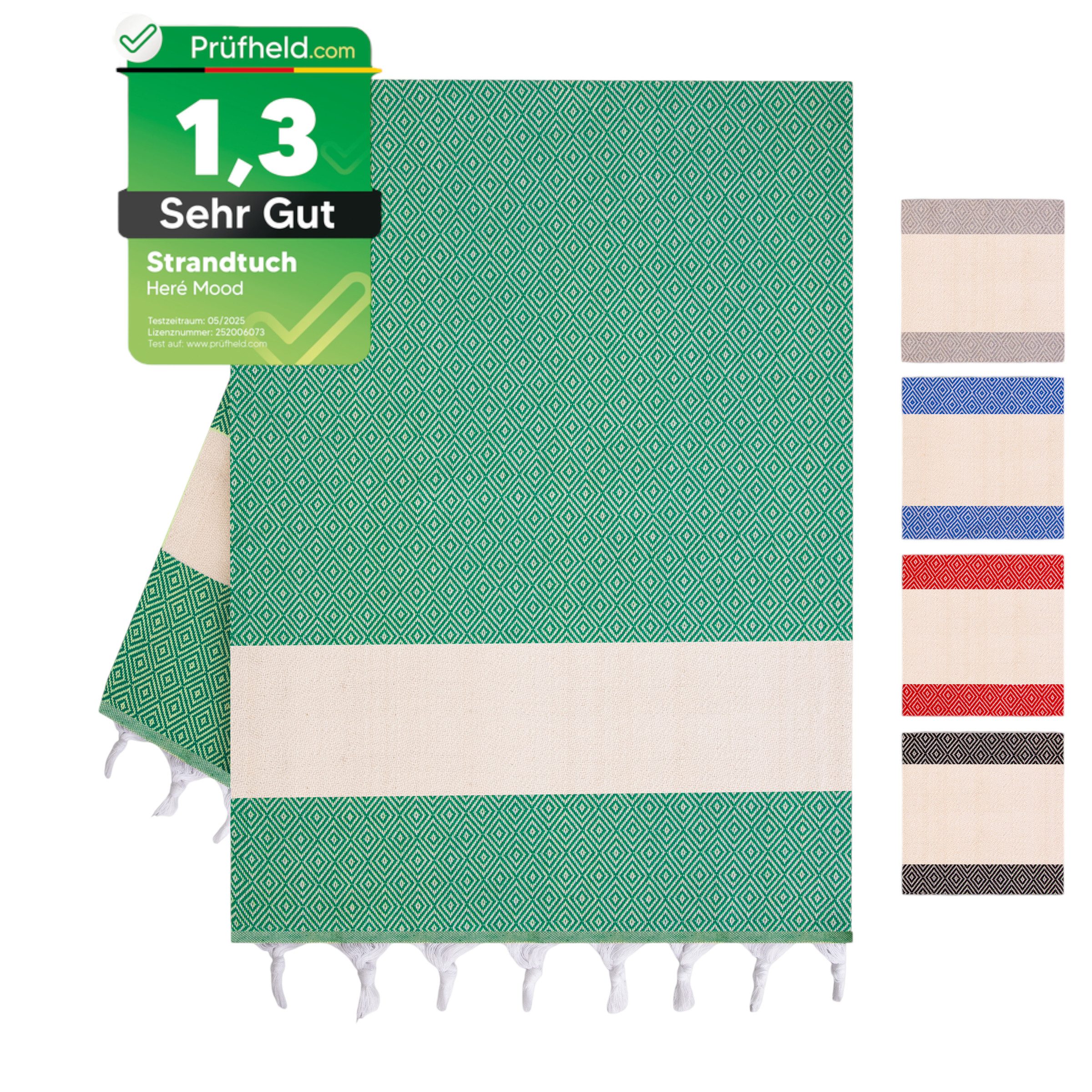 Luxus, Leichtigkeit und Funktionalität – vereint in einem Hamamtuch Ob nach einem heißen Saunagang, am sonnigen Strand oder beim entspannten Yoga – das richtige Tuch macht den Unterschied. Das HereMood Hamamtuch XXL ist mehr als nur ein Handtuch. Es ist ein stilvoller, funktionaler Begleiter für alle, die auf Qualität, Komfort und Design Wert legen. Design trifft auf Funktion Mit einer großzügigen Размер von 100x180 cm bietet unser Hamamtuch ausreichend Platz zum Entspannen, Abtrocknen oder Einwickeln – ideal für Damen und Herren. Trotz seiner Размер ist es erstaunlich leicht (nur 380g) und lässt sich kompakt zusammenfalten. So passt es mühelos in jede Sporttasche, Reisetasche oder in den Rucksack für den spontanen Ausflug. Natürlich & zertifiziert – für ein gutes Gefühl auf der Haut Gefertigt aus 100% hochwertiger Baumwolle überzeugt das Tuch durch seine natürliche Weichheit und Hautfreundlichkeit. Die Testergebnis garantiert, dass es frei von schädlichen Substanzen ist – sicher für Sie und Ihre Familie. In unabhängigen Tests wurde unser Tuch mit dem Ergebnis „Sehr Gut“ ausgezeichnet – ein klares Zeichen für geprüfte Qualität. Schnell wieder einsatzbereit Dank der speziellen Flachwebung ist das Hamamtuch besonders saugfähig und trocknet viel schneller als herkömmliche Frottee-Handtücher. Gerade in Sauna, Spa oder im Urlaub spart das nicht nur Zeit, sondern auch Gewicht beim Gepäck. Flexibel einsetzbar – für Ihren aktiven Alltag Das Herémood Hamamtuch ist ein echtes Multitalent: Nutzen Sie es als Saunatuch, Strandtuch, Badetuch, Yogamattenauflage oder sogar als leichtes Reisetuch. Mit seinem eleganten Look und den dekorativen Fransen macht es überall eine gute Figur – sei es im Wellnesshotel, am Pool oder im heimischen Badezimmer. Erhältlich im praktischen 1er- oder 2er-Set Je nach Bedarf können Sie unser Hamamtuch einzeln oder im Vorteilspack bestellen – ideal auch als stilvolles Geschenk für Wellnessliebhaber, Sportler oder Vielreisende. Pflegeleicht und langlebig Waschbar bei 40°C, farbecht und robust – das Tuch behält auch nach vielen Wäschen seine Form und Qualität. Herémood – Für alle, die nicht einfach nur ein Handtuch wollen. Sondern ein Erlebnis.