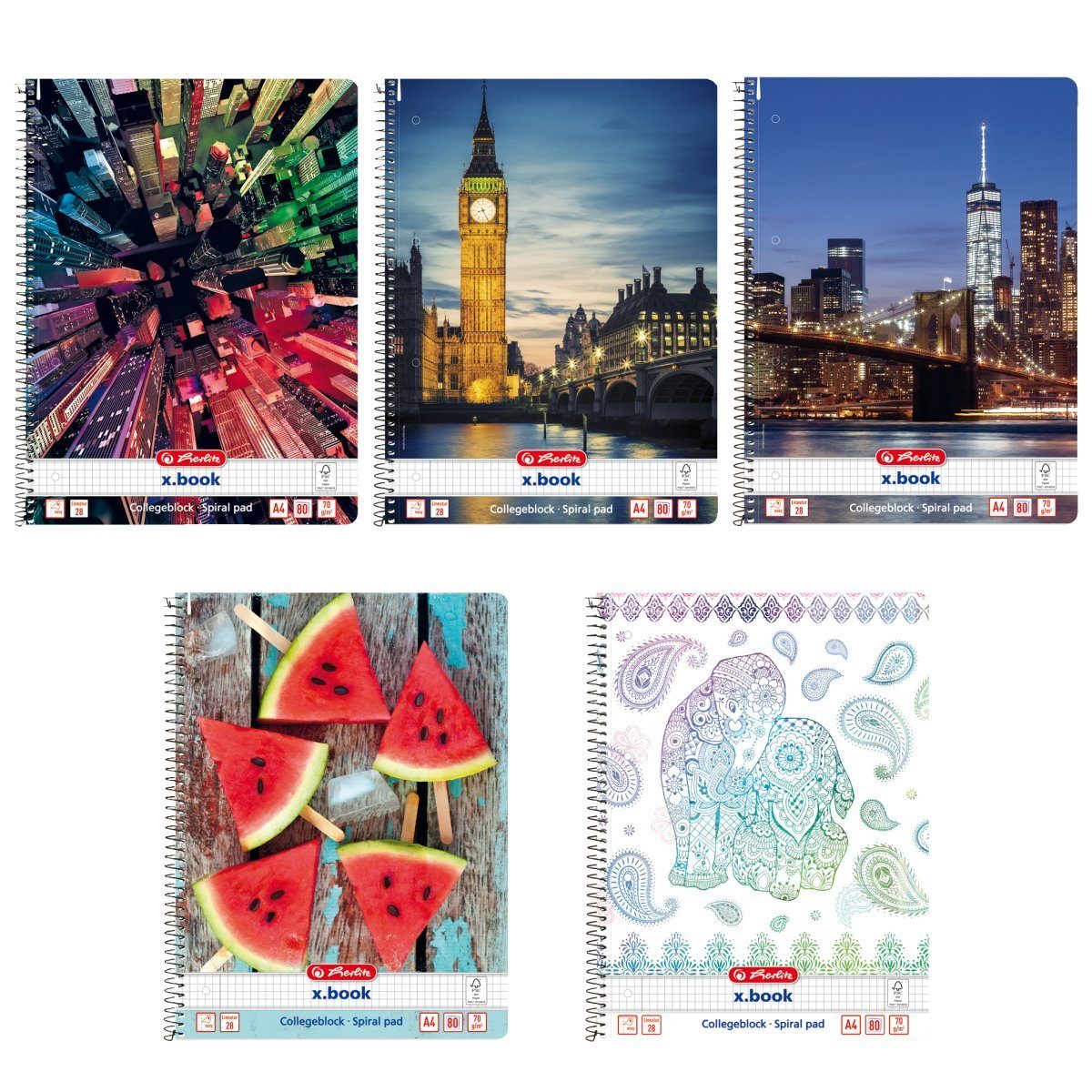 Herlitz Collegeblock 5x Herlitz Collegeblock / DIN A4 / Spiralblock / kariert / 5 verschied