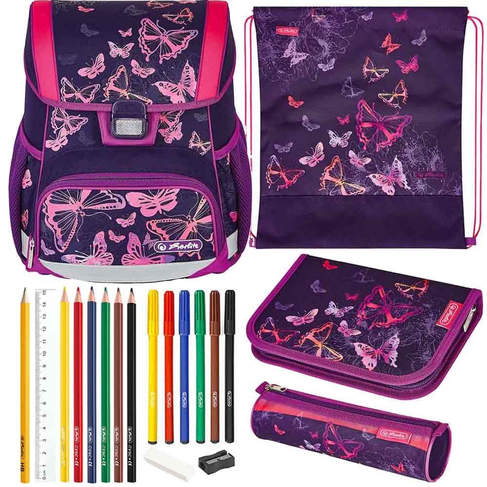 ACHTUNG! Bei diesem Herlitz Schulranzen Loop Plus Butterflies handelt es sich um ein Qualitätsprodukt, welches nach den neuesten Erkenntnissen des Gesundheits- und des Umweltschutzes erstellt worden ist. Das Bild zum gefüllten Schüleretui zeigt nur ein Beispiel, wie die Füllung aussehen kann. Je nach Verfügbarkeit, zum Zeitpunkt der Lieferung, kann der dargestellte Inhalt von der tatsächlichen Lieferung minimal abweichen. Bitte beachten Sie, dass die Farben auf Ihrem Bildschirm von den Originalfarben abweichen können.