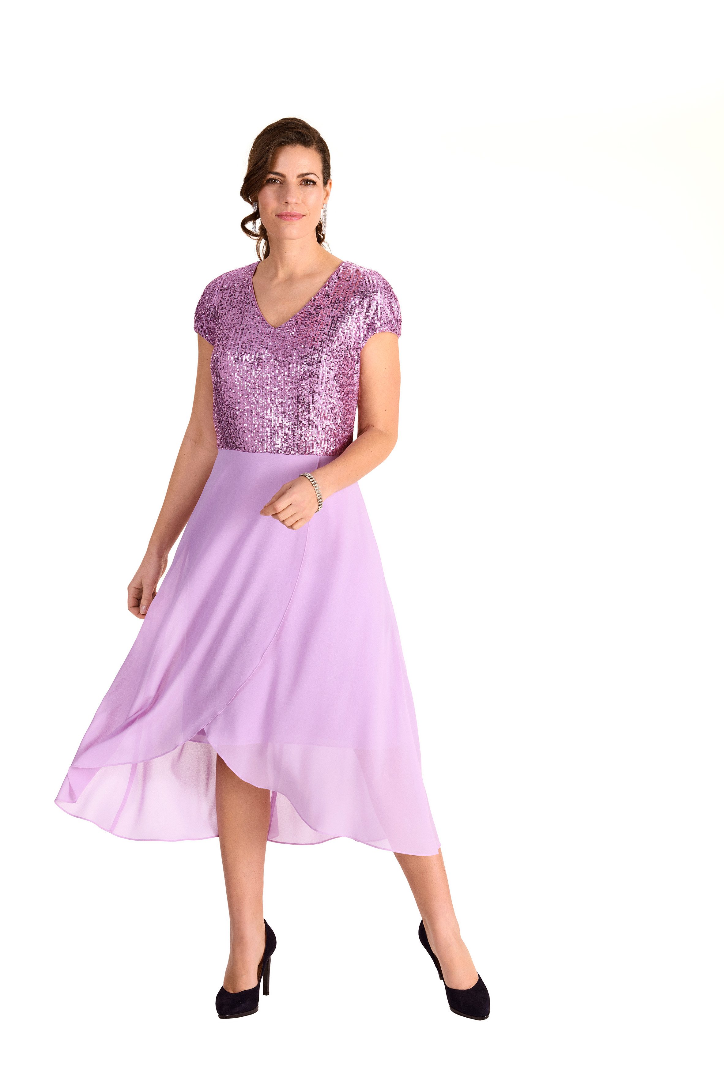 Besondere Merkmale | mit raffiniertem Materialmix aus Paillette und Chiffon |