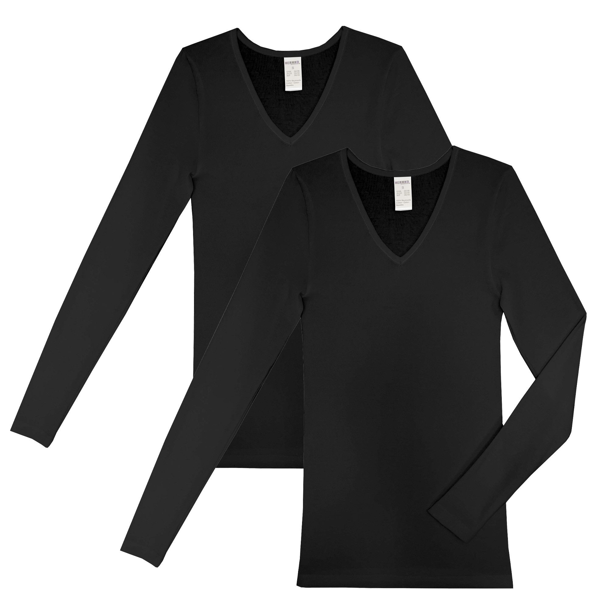 HERMKO 13680 Damen langarm Unterhemd mit V-Ausschnitt