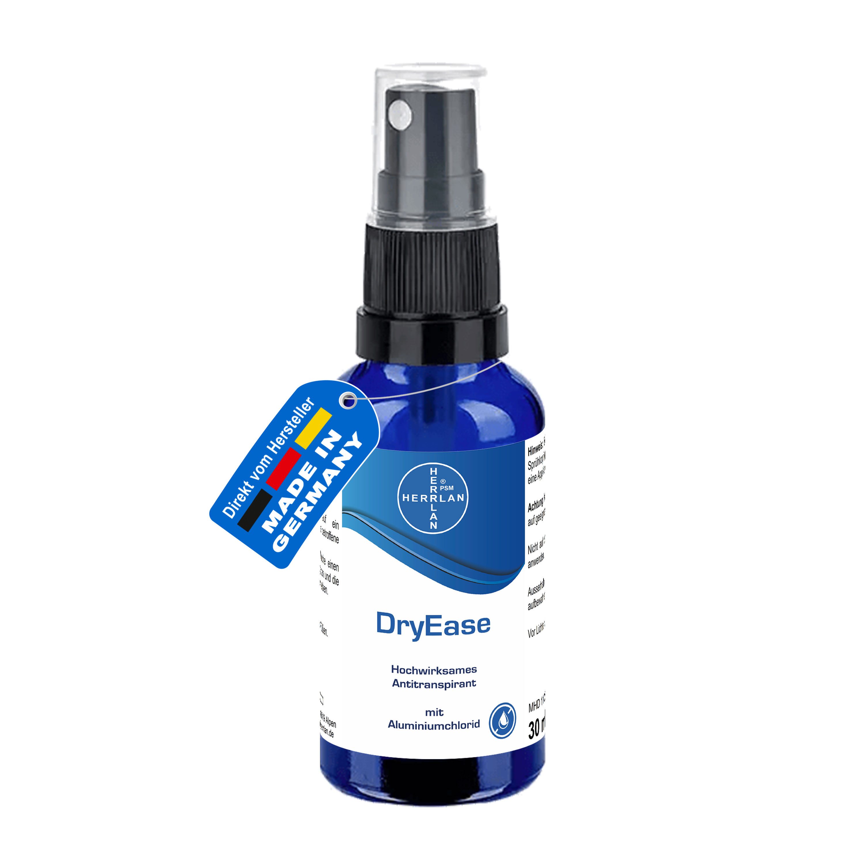 Unser hochwirksames Antitranspirant DryEase mit Aluminiumchlorid bietet zuverlässigen Schutz – selbst bei starkem Schwitzen.