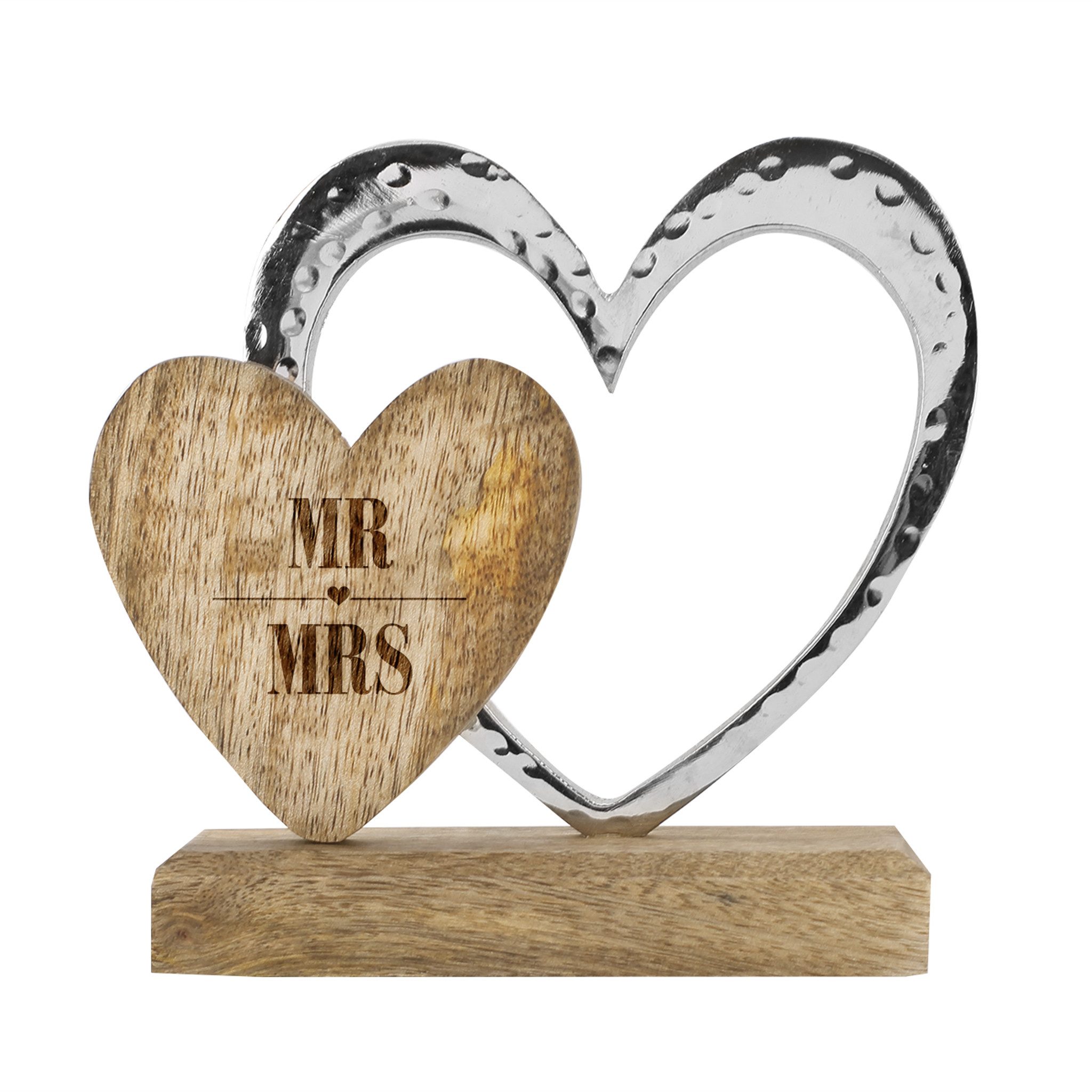 Diese wunderschöne Deko-Skulptur ist eine perfekte Kombination aus natürlichem Mangoholz und elegantem Aluminium. Das stilvolle Design mit den zwei Herzen symbolisiert Liebe, Zusammenhalt und Zuneigung. Ob als Hochzeitsgeschenk, für frisch Verliebte oder zur Dekoration des eigenen Zuhauses – dieses Herz aus Holz und Metall verleiht jedem Raum eine warme und romantische Atmosphäre.