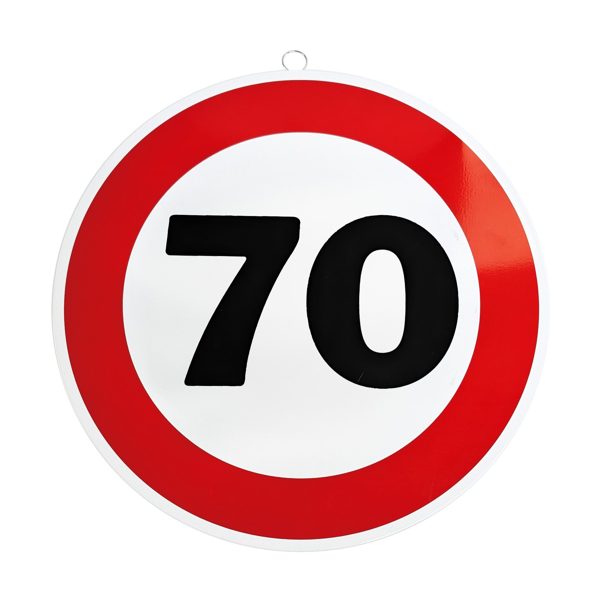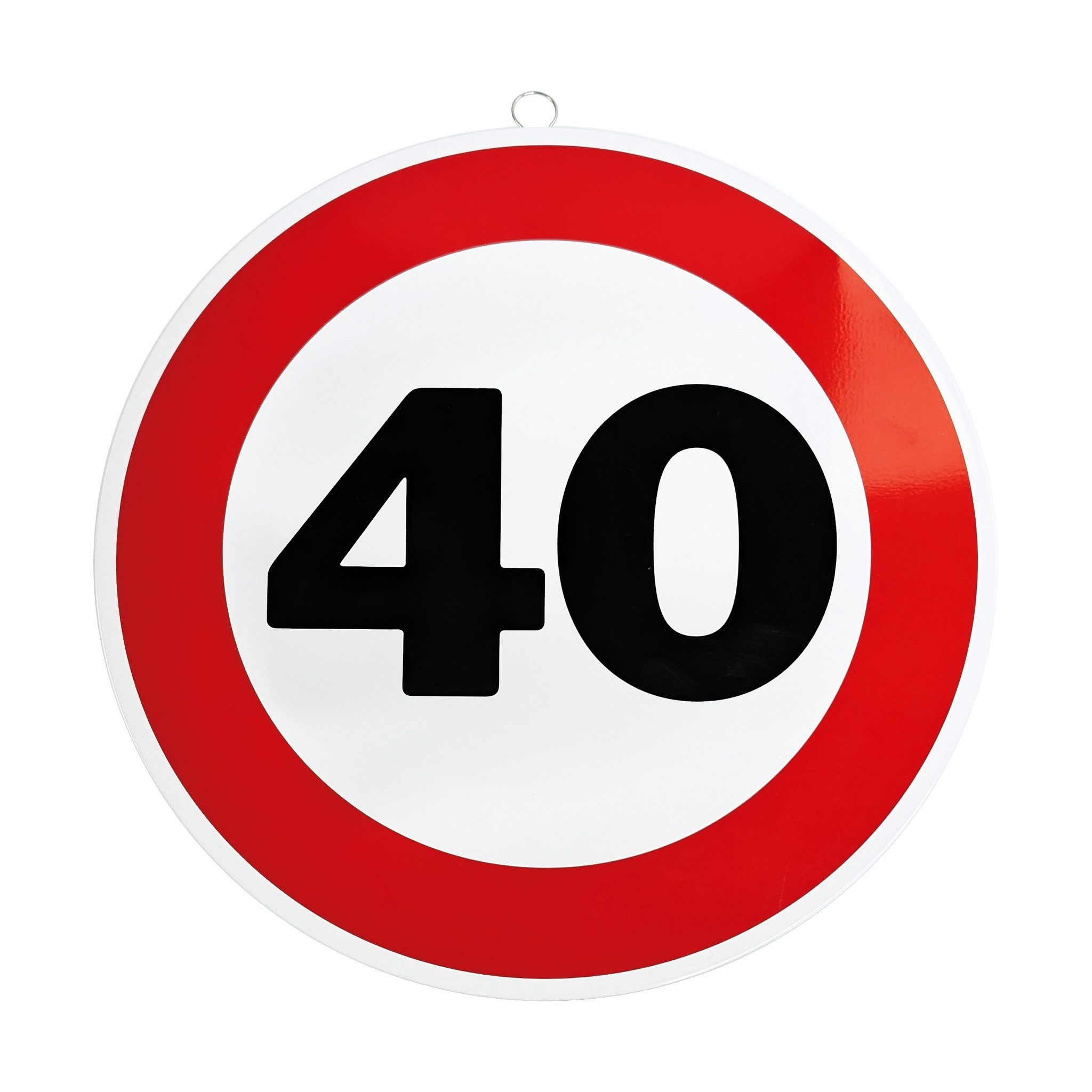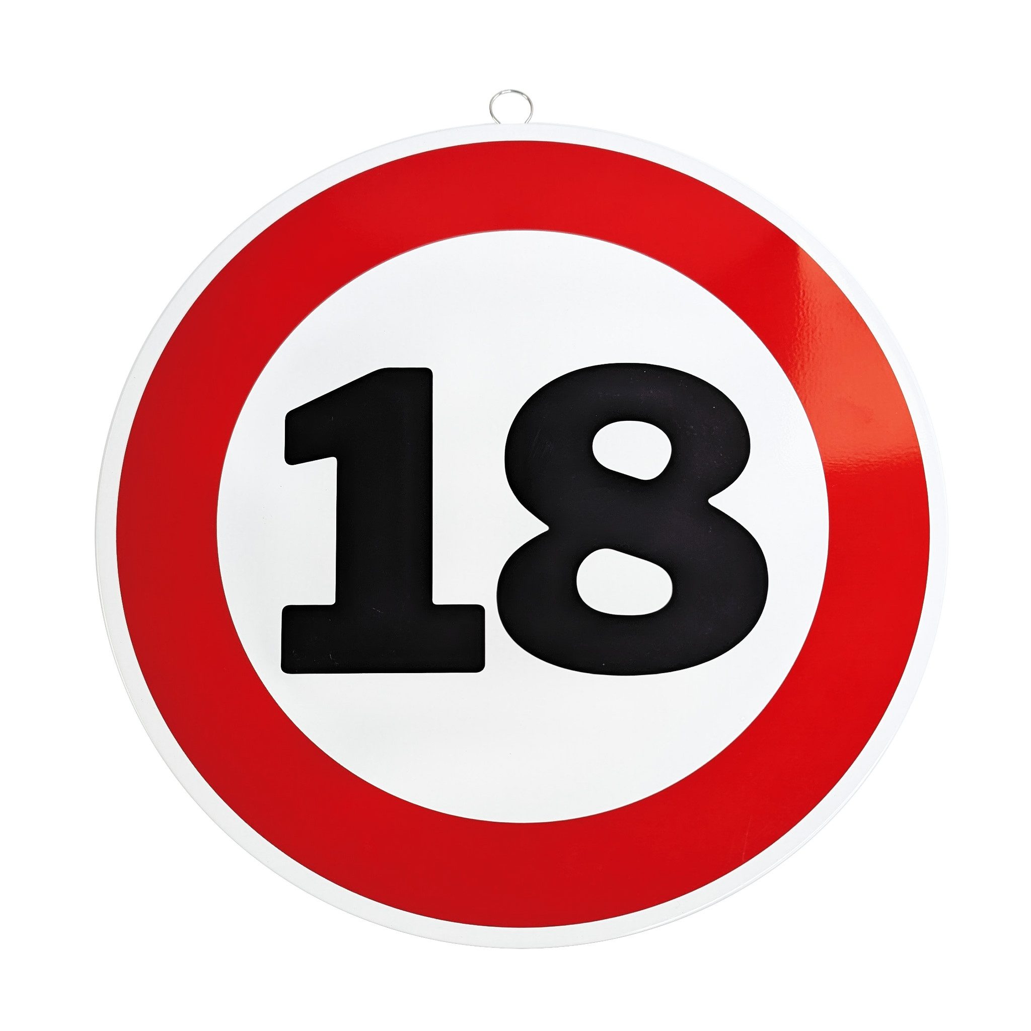 Mit diesem dekorativen Metallschild im Stil eines Verkehrszeichens setzt du zum Geburtstag ein humorvolles Statement. Das runde Schild mit rotem Rand und markanter Alterszahl erinnert an ein klassisches Verkehrsschild und ist das perfekte Highlight für jede Geburtstagsfeier.