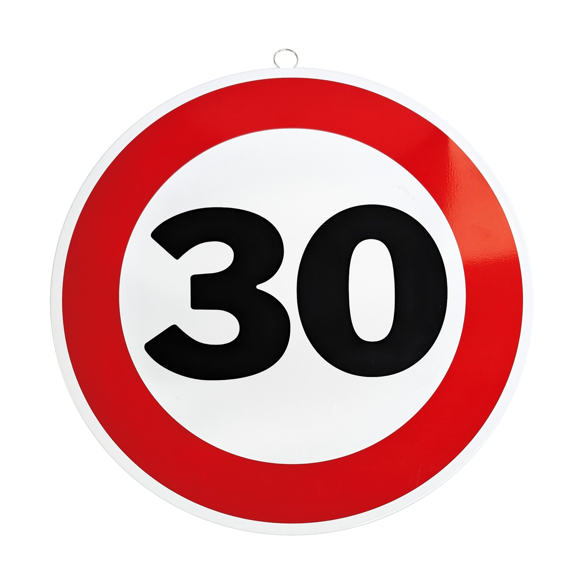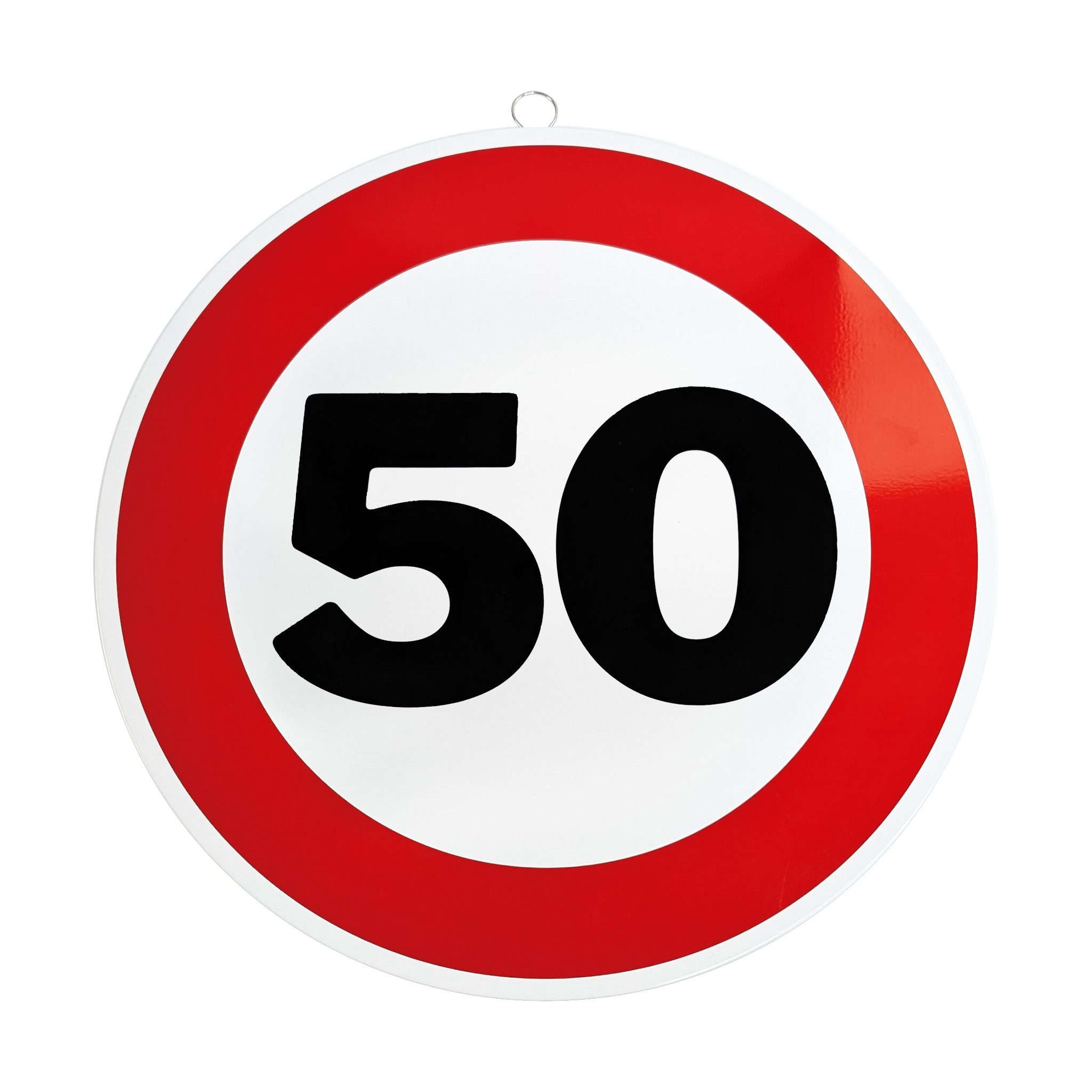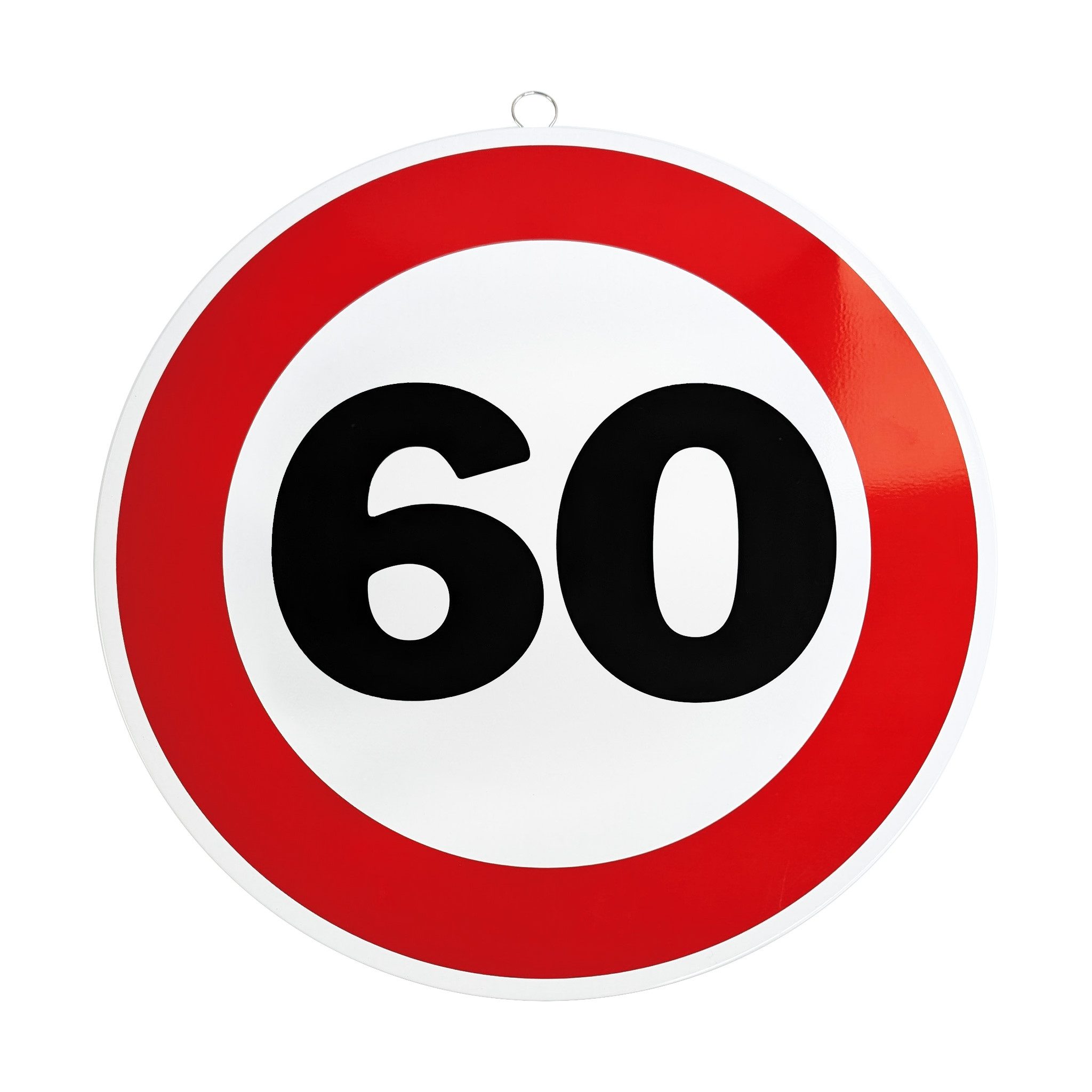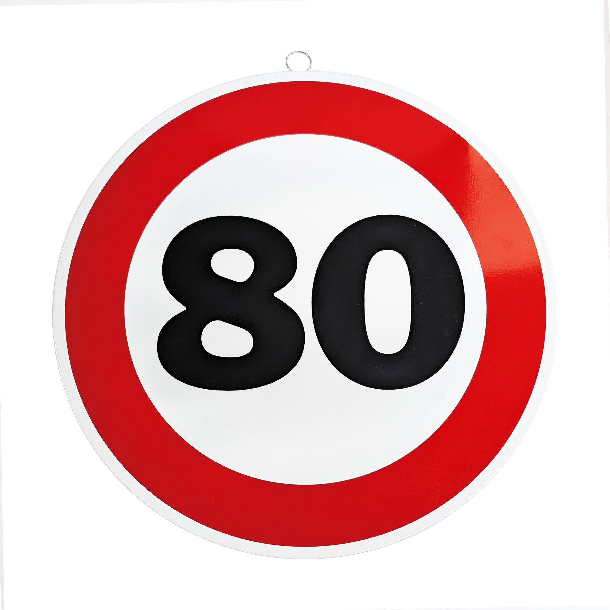 Mit diesem dekorativen Metallschild im Stil eines Verkehrszeichens setzt du zum Geburtstag ein humorvolles Statement. Das runde Schild mit rotem Rand und markanter Alterszahl erinnert an ein klassisches Verkehrsschild und ist das perfekte Highlight für jede Geburtstagsfeier.