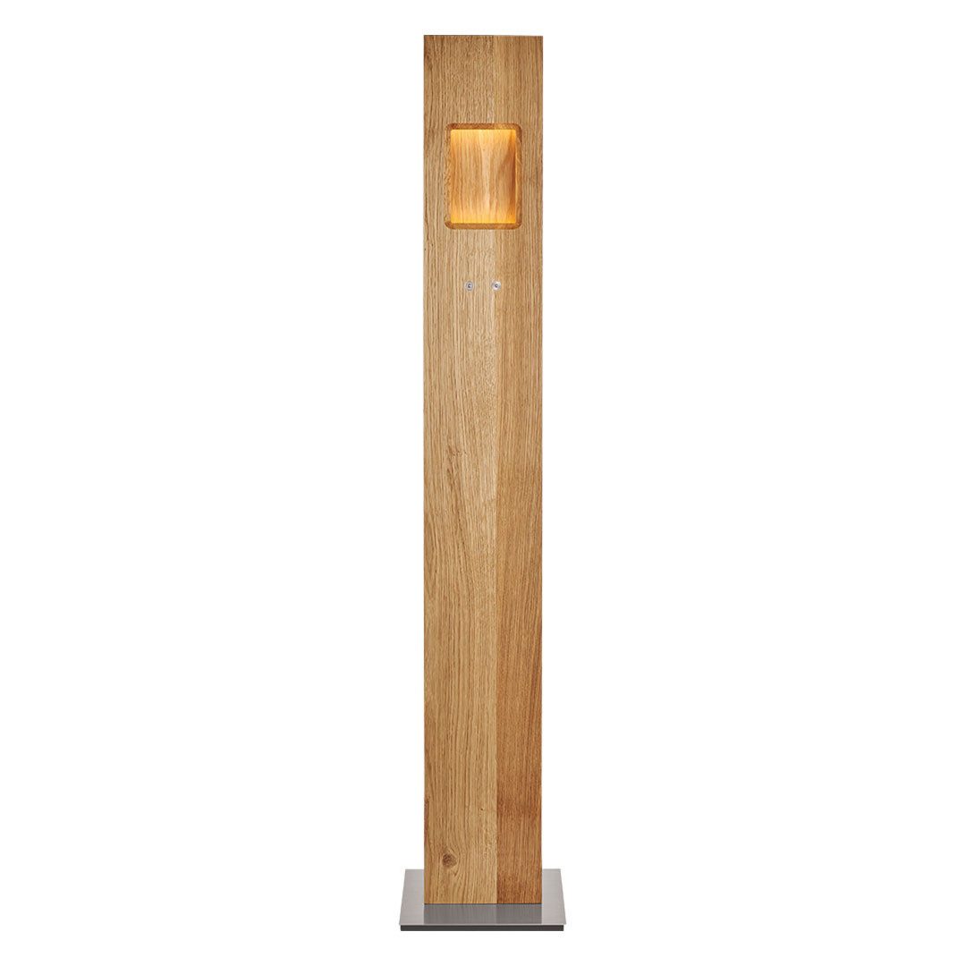 Die Pan Stehleuchte LED vereint die warme Ausstrahlung massiver Asteiche mit moderner LED-Technologie in einer eindrucksvoll schlichten Form. Gefertigt aus naturbelassener oder geölter Asteiche, wird das minimalistische Brettdesign zum stilvollen Lichtobjekt, das die Schönheit des Holzes in den Mittelpunkt stellt. Ein fein eingelassenes Passepartout-Fenster im oberen Drittel der Leuchte sorgt für einen faszinierenden Tiefeneffekt und lenkt den Blick auf die ausdrucksstarke Maserung des Holzes.