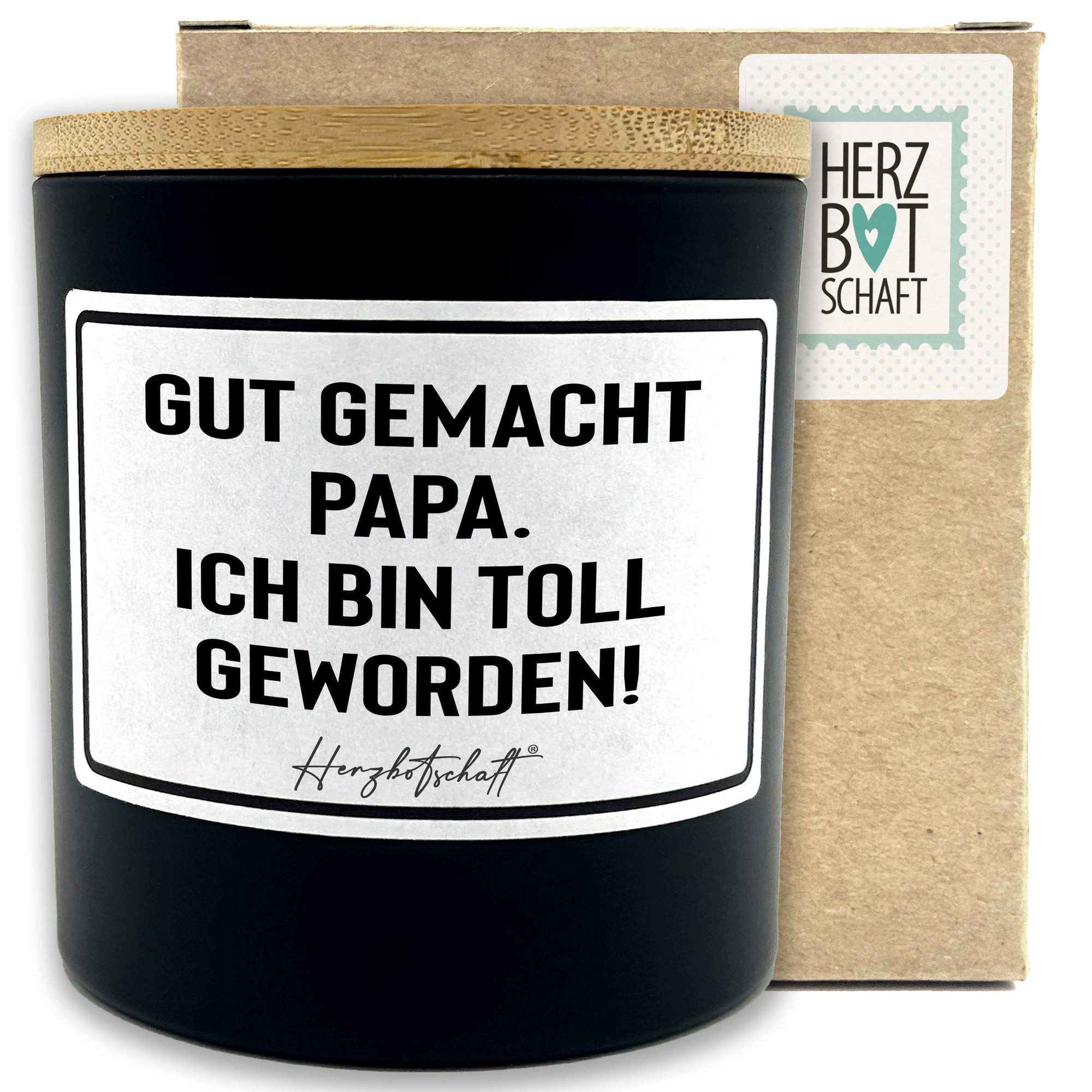 Herzbotschaft Duftkerze, (Gut gemacht Papa. Ich bin toll geworden!, originelles Geschenk, handgemachte nachhaltige Sojakerze im Glas)