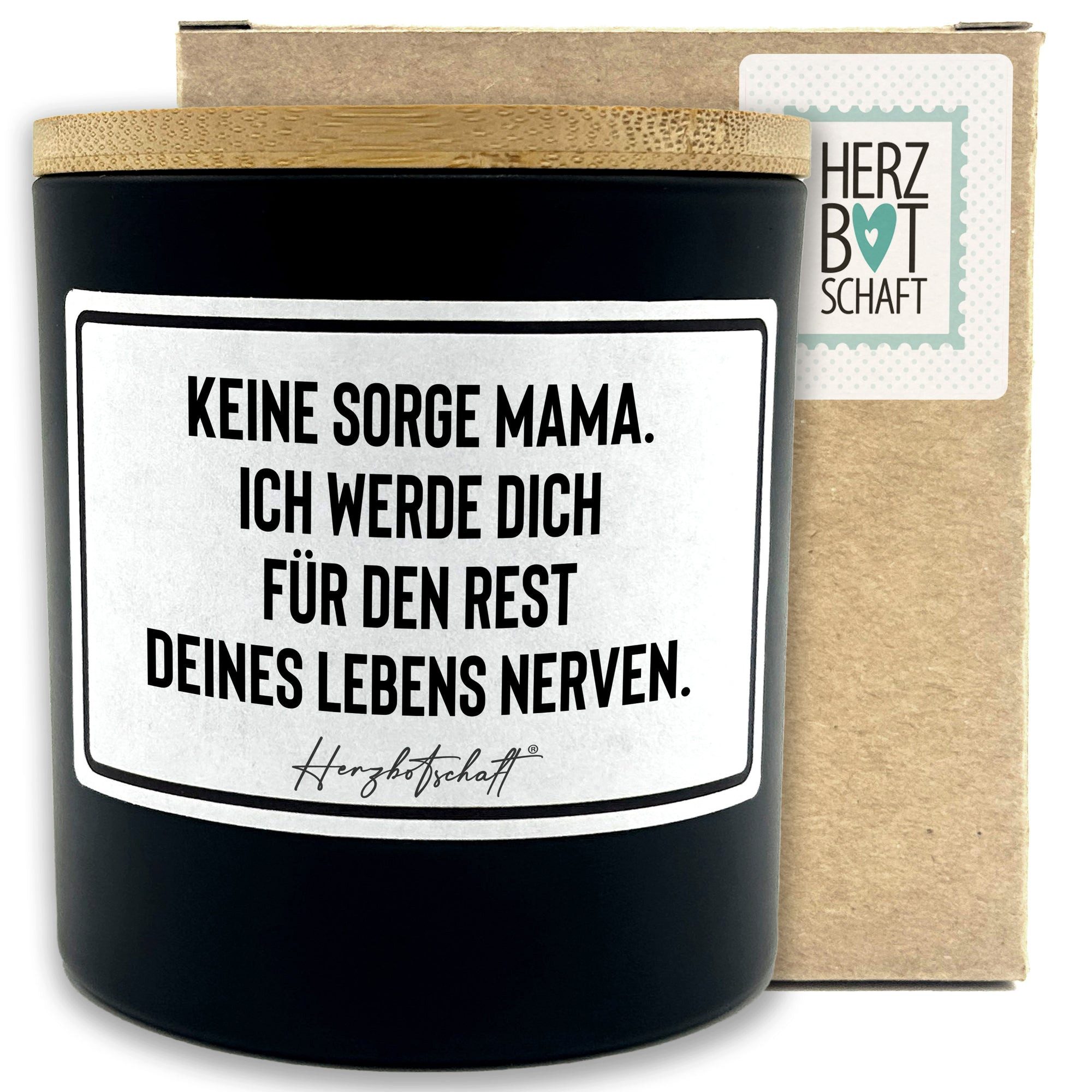 Keine Sorge Mama. Ich werde dich für den Rest deines Lebens nerven., originelles Geschenk, handgemachte nachhaltige Sojakerze im Glas