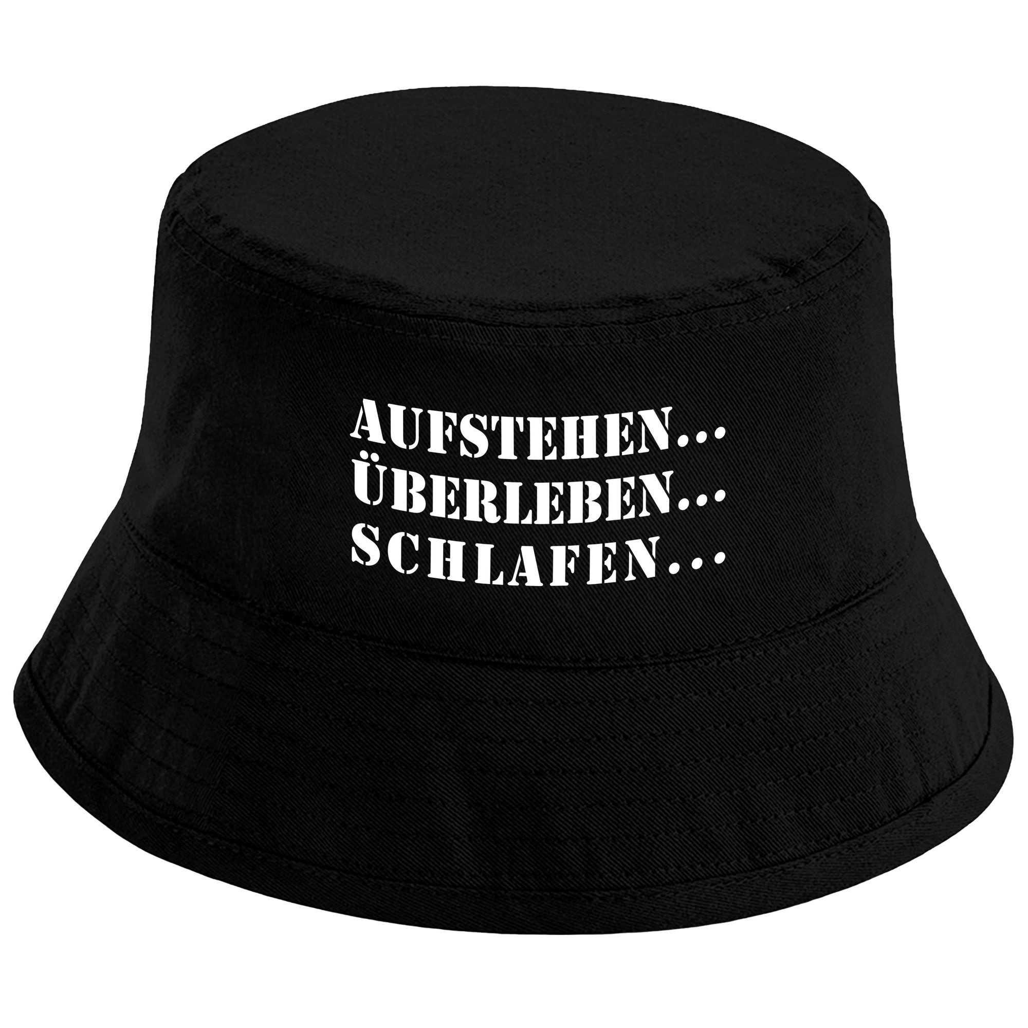Herzbotschaft Sonnenhut Bucket Hat Aufstehen... Überleben... Schlafen... (Unisex Einheitsgröße, Sommerhut mit Spruch, Festivalhut, Fischerhut) für Damen & Herren