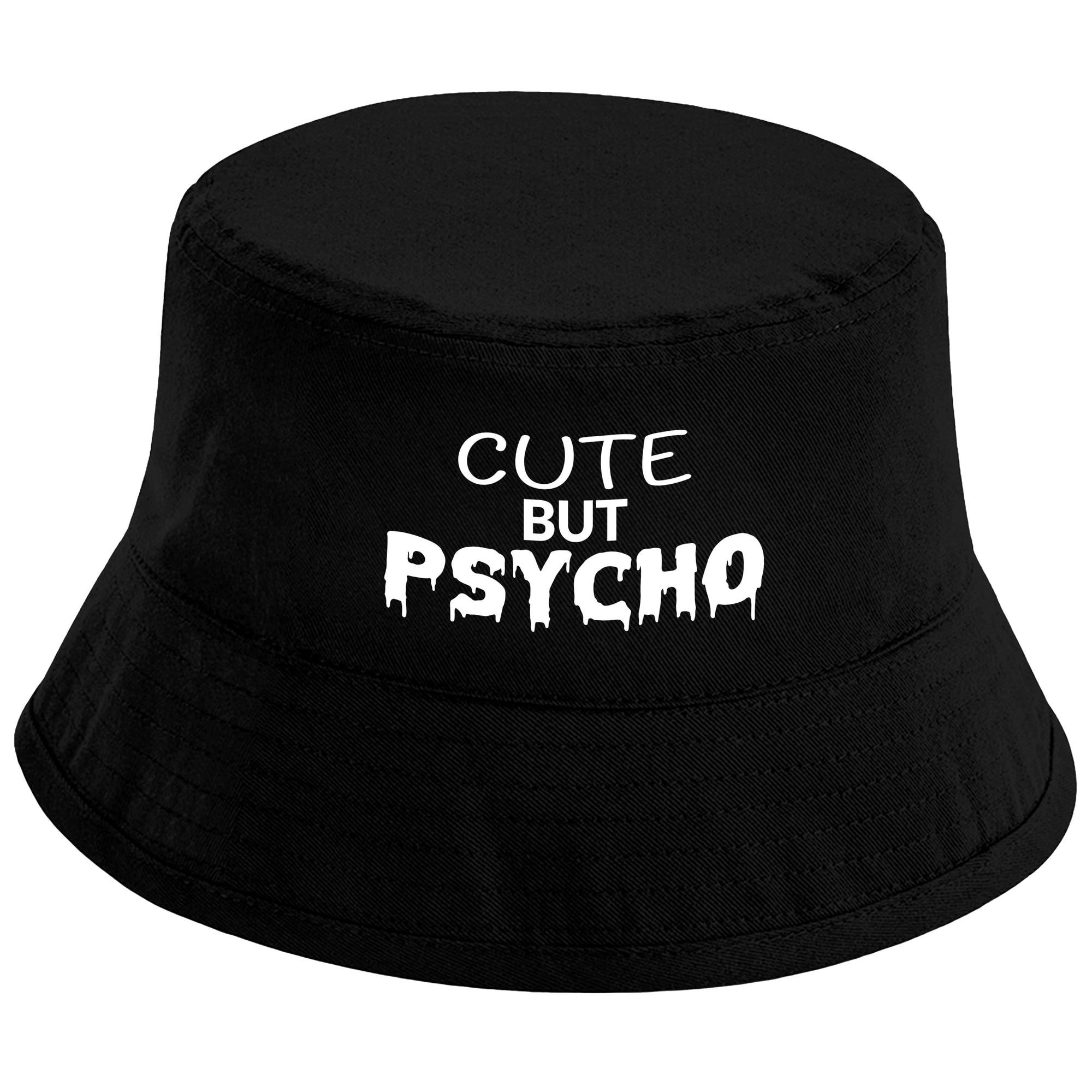 Herzbotschaft Sonnenhut Bucket Hat Cute but Psycho (Unisex Einheitsgröße, Sommerhut mit Spruch, Festivalhut, Fischerhut) für Damen & Herren