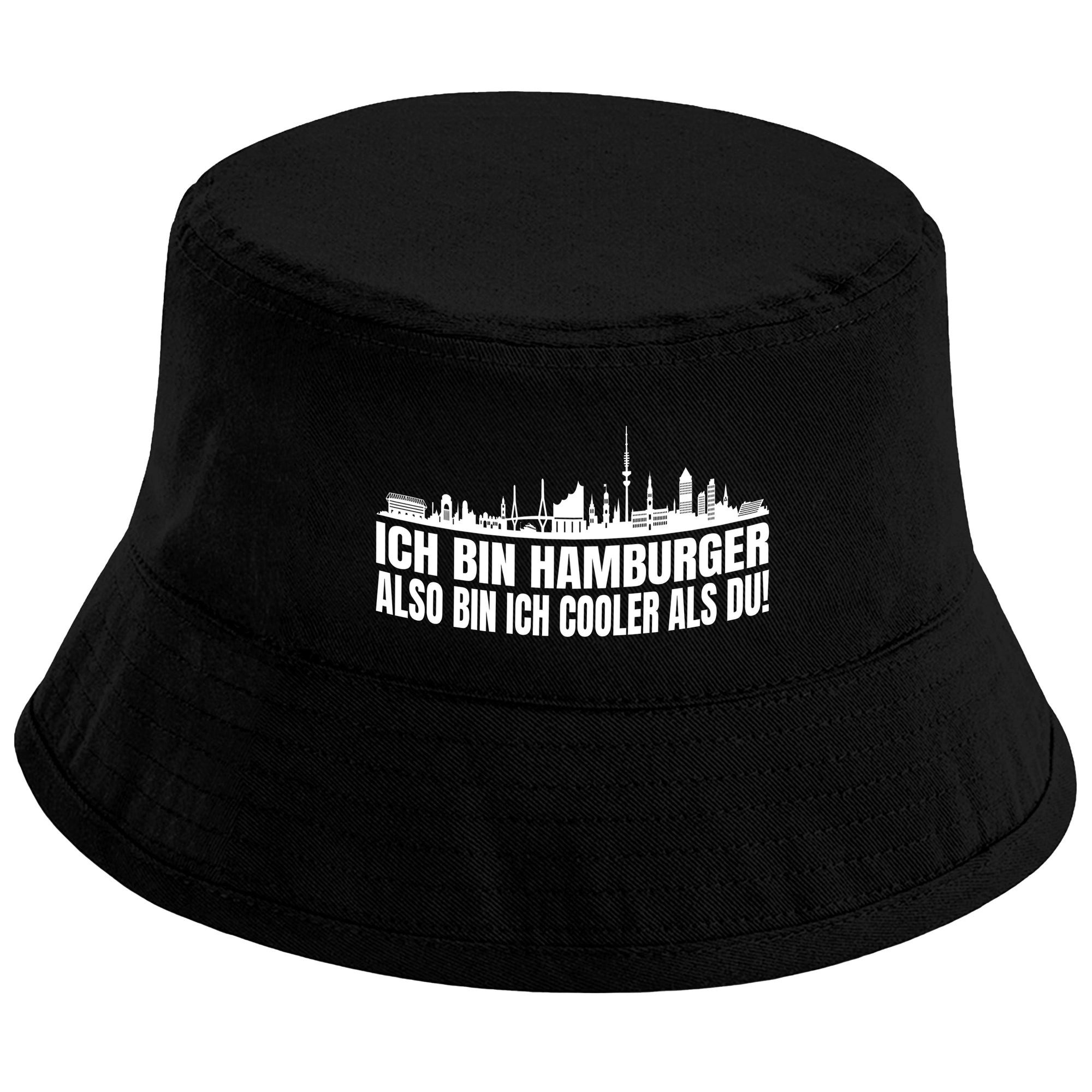 Herzbotschaft Sonnenhut Bucket Hat Ich bin Hamburger also bin ich cooler als du! (Unisex Einheitsgröße, Sommerhut mit Spruch, Festivalhut, Fischerhut) für Damen & Herren