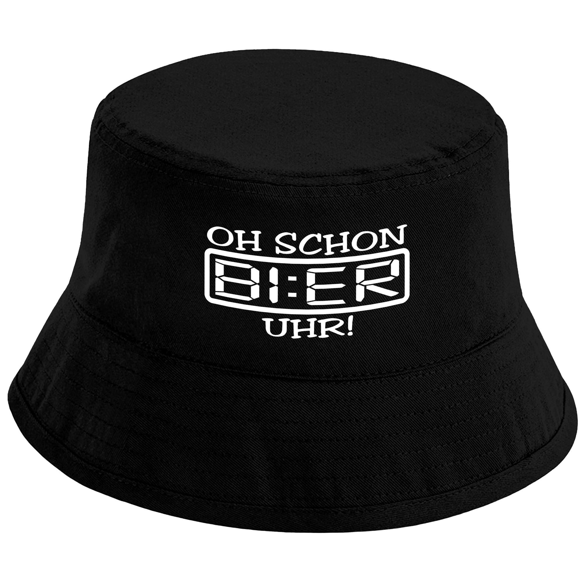 Herzbotschaft Sonnenhut Bucket Hat Oh schon Bier Uhr (Unisex Einheitsgröße, Sommerhut mit Spruch, Festivalhut, Fischerhut) für Damen & Herren
