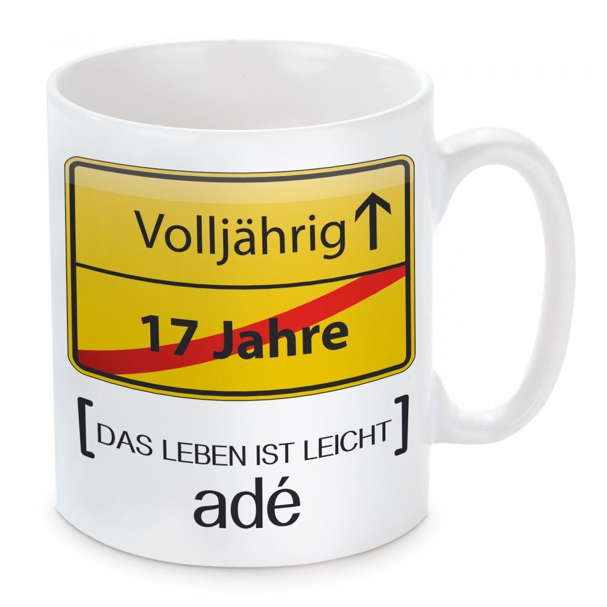 Herzbotschaft Tasse Kaffeebecher mit Motiv 17 Jahre - Volljährig!, Keramik, Kaffeetasse spülmaschinenfest und mikrowellengeeignet
