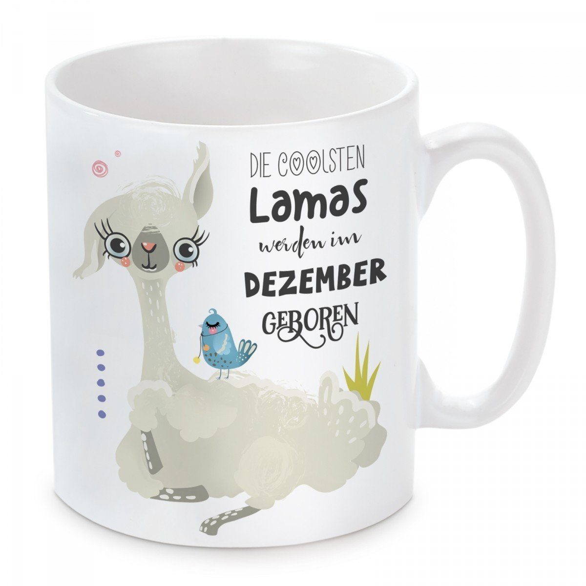Herzbotschaft Tasse Kaffeebecher mit Motiv Die coolsten Lamas werden im Dezember geboren, Keramik, Kaffeetasse spülmaschinenfest und mikrowellengeeignet