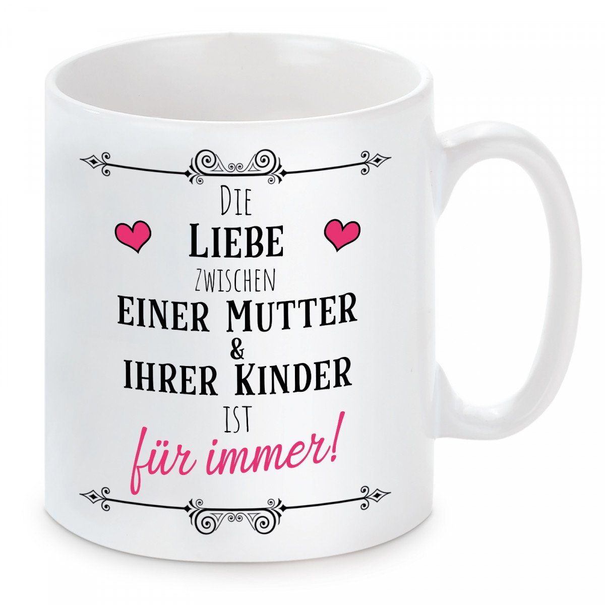 Herzbotschaft Tasse Kaffeebecher mit Motiv Die Liebe zwischen einer Mutter & ihrer Kinder, Keramik, Kaffeetasse spülmaschinenfest und mikrowellengeeignet