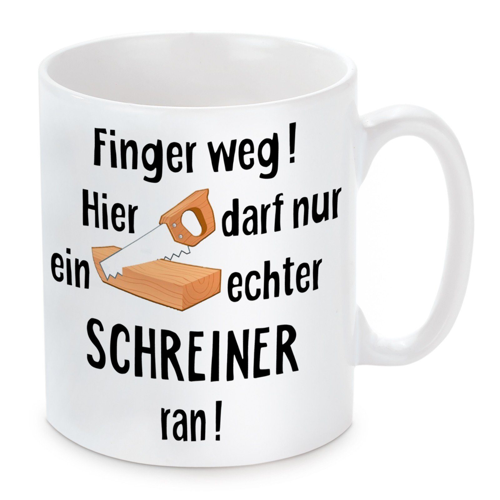 Herzbotschaft Tasse Kaffeebecher mit Motiv Finger weg! Hier darf nur ein echter Schreiner, Keramik, Kaffeetasse spülmaschinenfest und mikrowellengeeignet