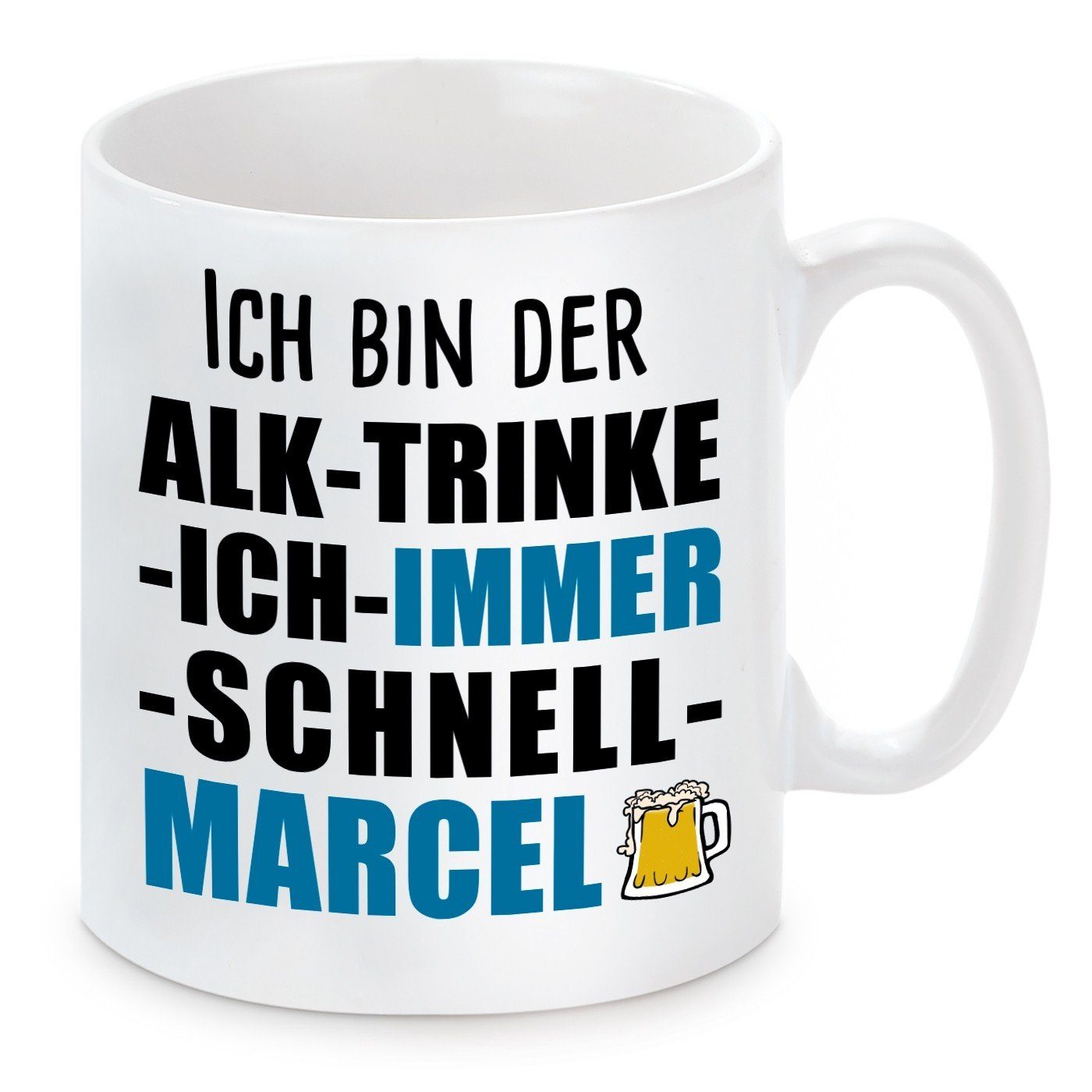 Herzbotschaft Tasse Kaffeebecher mit Motiv ICH BIN DER ALK MARCEL, Keramik, Kaffeetasse spülmaschinenfest und mikrowellengeeignet