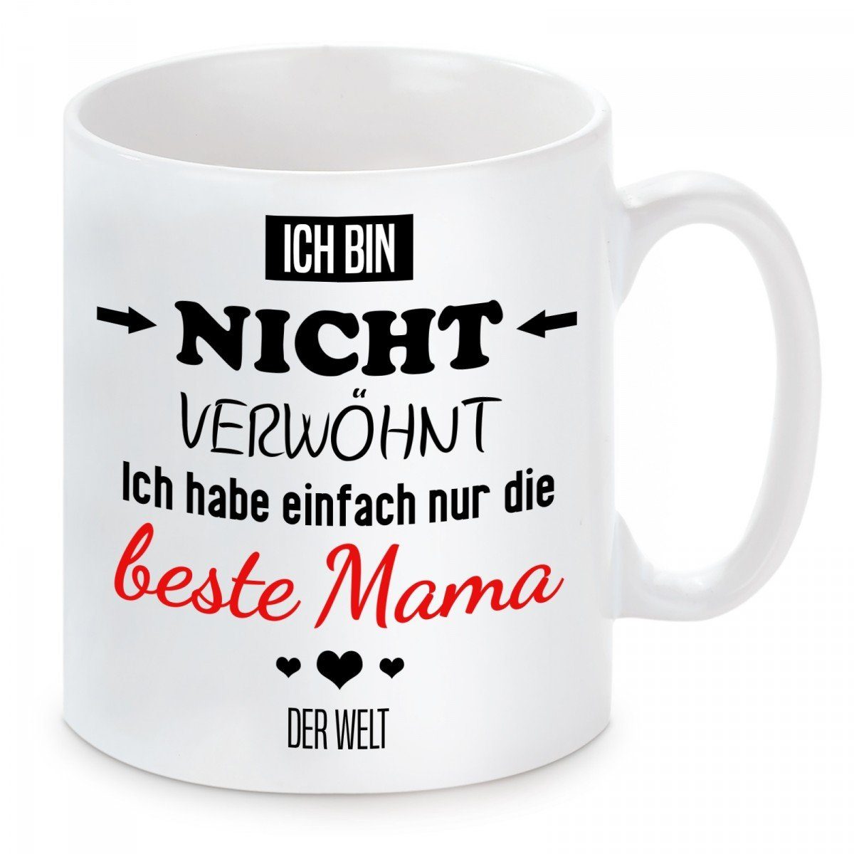 Herzbotschaft Tasse Kaffeebecher mit Motiv Ich bin nicht verwöhnt Mama, Keramik, Kaffeetasse spülmaschinenfest und mikrowellengeeignet