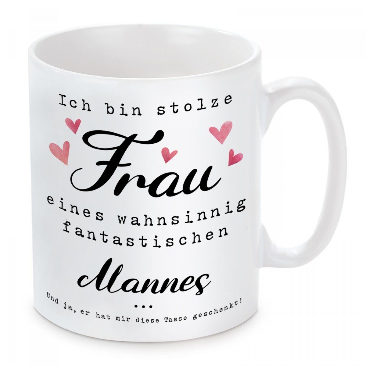 Herzbotschaft Tasse Kaffeebecher mit Motiv Ich bin stolze Frau Mannes, Keramik, Kaffeetasse spülmaschinenfest und mikrowellengeeignet