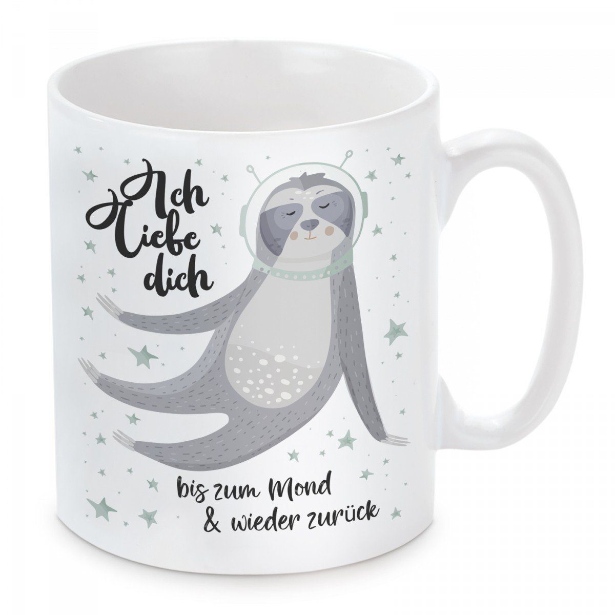 Herzbotschaft Tasse Kaffeebecher mit Motiv Ich liebe dich bis zum Mond und wieder zurück, Keramik, Kaffeetasse spülmaschinenfest und mikrowellengeeignet