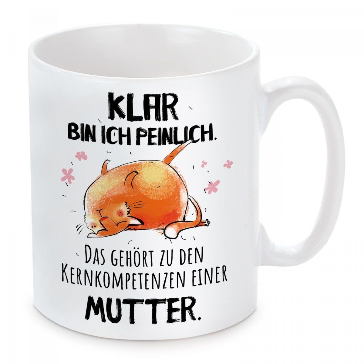 Herzbotschaft Tasse Kaffeebecher mit Motiv Klar bin ich peinlich. Das gehört zu den, Keramik, Kaffeetasse spülmaschinenfest und mikrowellengeeignet