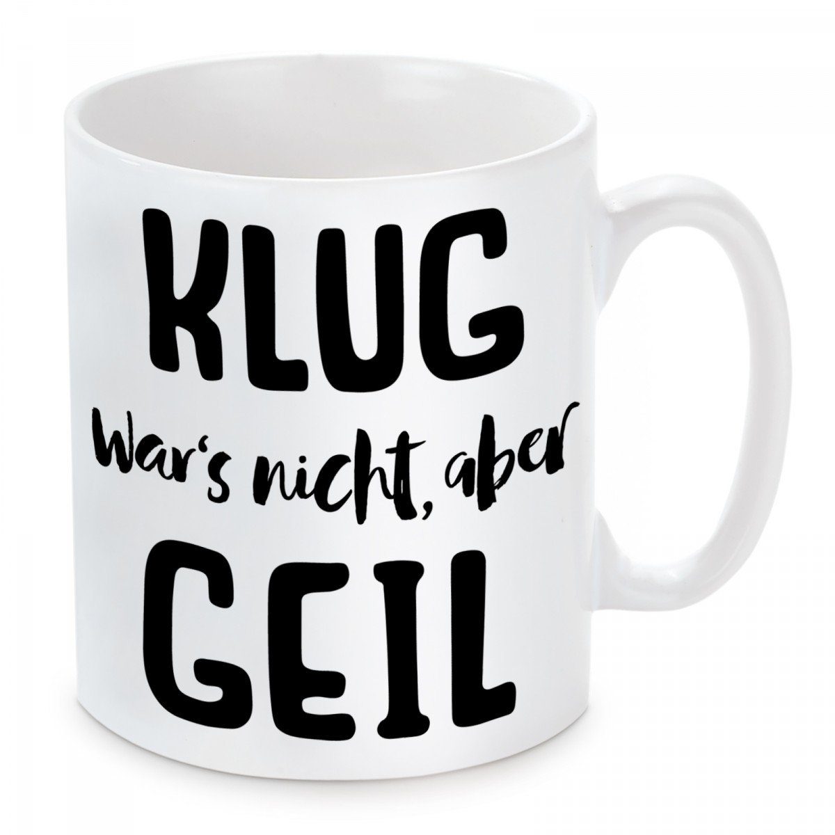 Herzbotschaft Tasse Kaffeebecher mit Motiv Klug war's nicht, aber geil, Keramik, Kaffeetasse spülmaschinenfest und mikrowellengeeignet