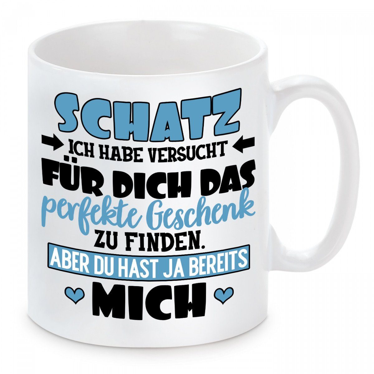 Herzbotschaft Tasse Kaffeebecher mit Motiv Schatz ich habe versucht, Keramik, Kaffeetasse spülmaschinenfest und mikrowellengeeignet
