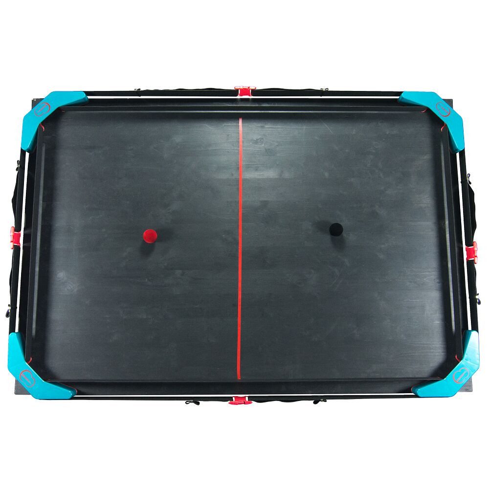 Hesherball ist der neuste Trend aus dem Hause der Headis-Erfinder. Das Hesherball Tischspiel besteht aus 4 Ecken, 4 Gurten und 2 Bällen und lässt sich innerhalb von 5 Minuten aufbauen. Всеs, was Sie benötigen, ist ein Tisch (max. Размер 2x1,4 m, max. Tischstärke 7 cm). Die Eckteile dienen als Tore und werden an den Tischecken mittels Klemmschrauben befestigt. Zwischen jeweils 2 Eckteilen wird ein Gurt befestigt. Dieser sollte so stark gespannt sein, dass die kleinen Spielbälle gut daran abprallen können. Die 2 Vollgummibälle haben einen Velourüberzug und schonen somit den Tisch und verhindern Kratzer.