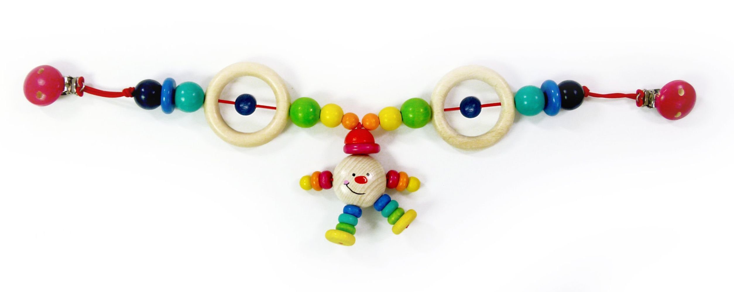 Babyspielzeug Kinderwagenkette Michel Schöne Kinderwagenkette mit verschiedenen Holzteilen, Perlen, Ringen und in der Mitte einer Holzfigur Michel. Der Michel besitzt auch kleine Glöckchen. Все Teile bestehen aus Buchenholz und sind teilweise bunt lackiert mit Farben die auf Wasserbasis und lösungsmittelfrei basieren. An der Schnur befindet sich links und rechts ein Metallclip mit denen man die Kette ganz leicht am Kinderwagen an den Seiten der Abdeckung befestigen kann BxLxH 520x30x150mm NEU |