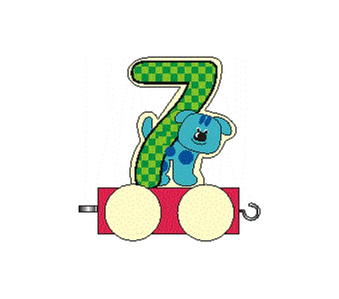 Holzdekoration Zahlenzug Ziffer 7 Anhänger vom Zahlenzug mit 4 Rädern aus Holz, mit Haken und Öse vorn und hinten zum anhängen mit weiteren Zahlenwagen. Die Ziffer "7" bunt gestaltet mit einem niedlichen Tier. Komplett aus Holz hergestellt und bunt lackiert mit Farben die auf Wasserbasis und lösungsmittelfrei basieren BxLxH 50x30x70mm NEU |