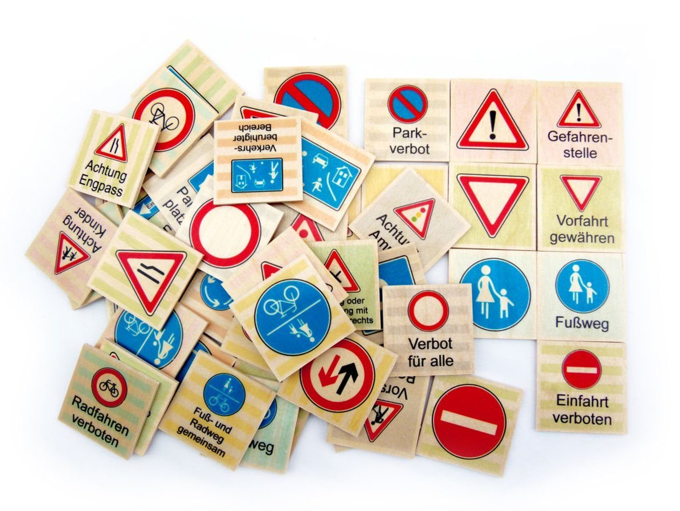 Holzspielzeug Memo - Spiel Verkehrszeichen Robust gestaltetes Memospiel zum spielen für die Kleinen. Holzteile sind mit Verkehrszeichen bedruckt. Es müssen immer die richtigen Paare gefunden werden. Всеs ist aus Holz gefertigt und teilweise bunt lackiert mit Farben die auf Wasserbasis und lösungsmittelfrei basieren BxLxH 50x3x50mm NEU |