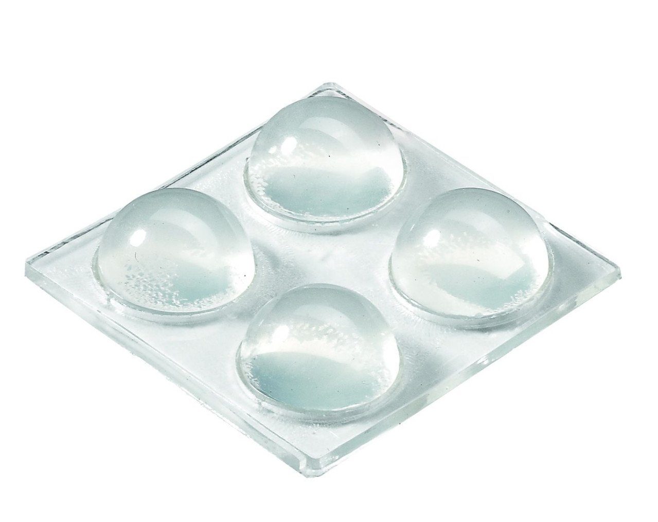 Höhe: 8,0 mm | Durchmesser: 16,0 mm | Inhalt: 12 Stück | Form: halbkugelförmig | Eigenschaft: selbstklebend | Material: Kunststoff | Farbe: transparent | Bitte beachten: Die zu beklebende Fläche am Möbel muss fettfrei und trocken sein |