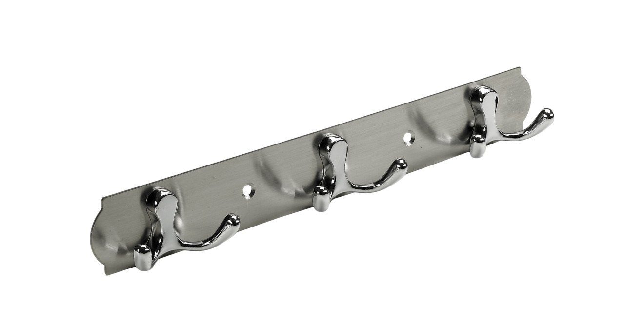 Produktdetails: Breite: 28,0 cm | Höhe: 3,8 cm | Tiefe: 3,3 cm | Anzahl der Haken: 3 Stück | Material: Edelstahl/Zinkdruckguss | Oberfläche: verchromt | Farbe: silber | Lieferumfang: 1 Stück, inkl. Befestigungsmaterial |