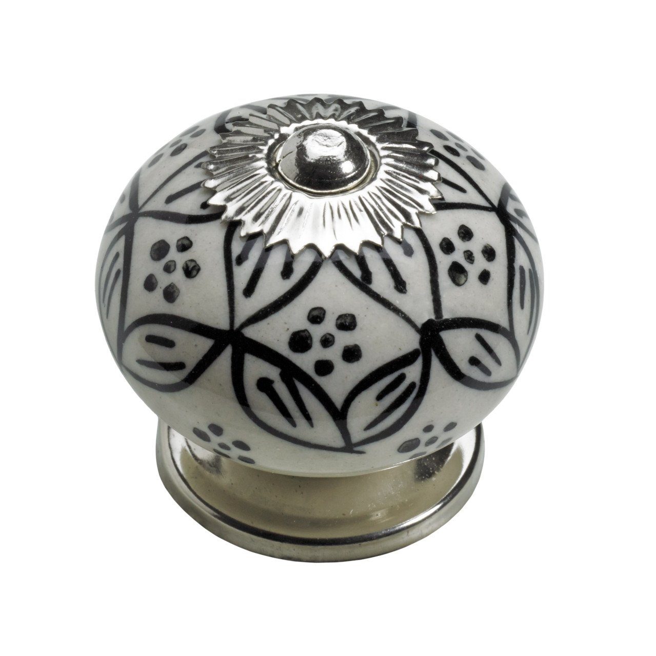 Hettich Möbelknopf Keramik weiß mit schwarzem Muster II Ø 40,0 mm - 1 Stück
