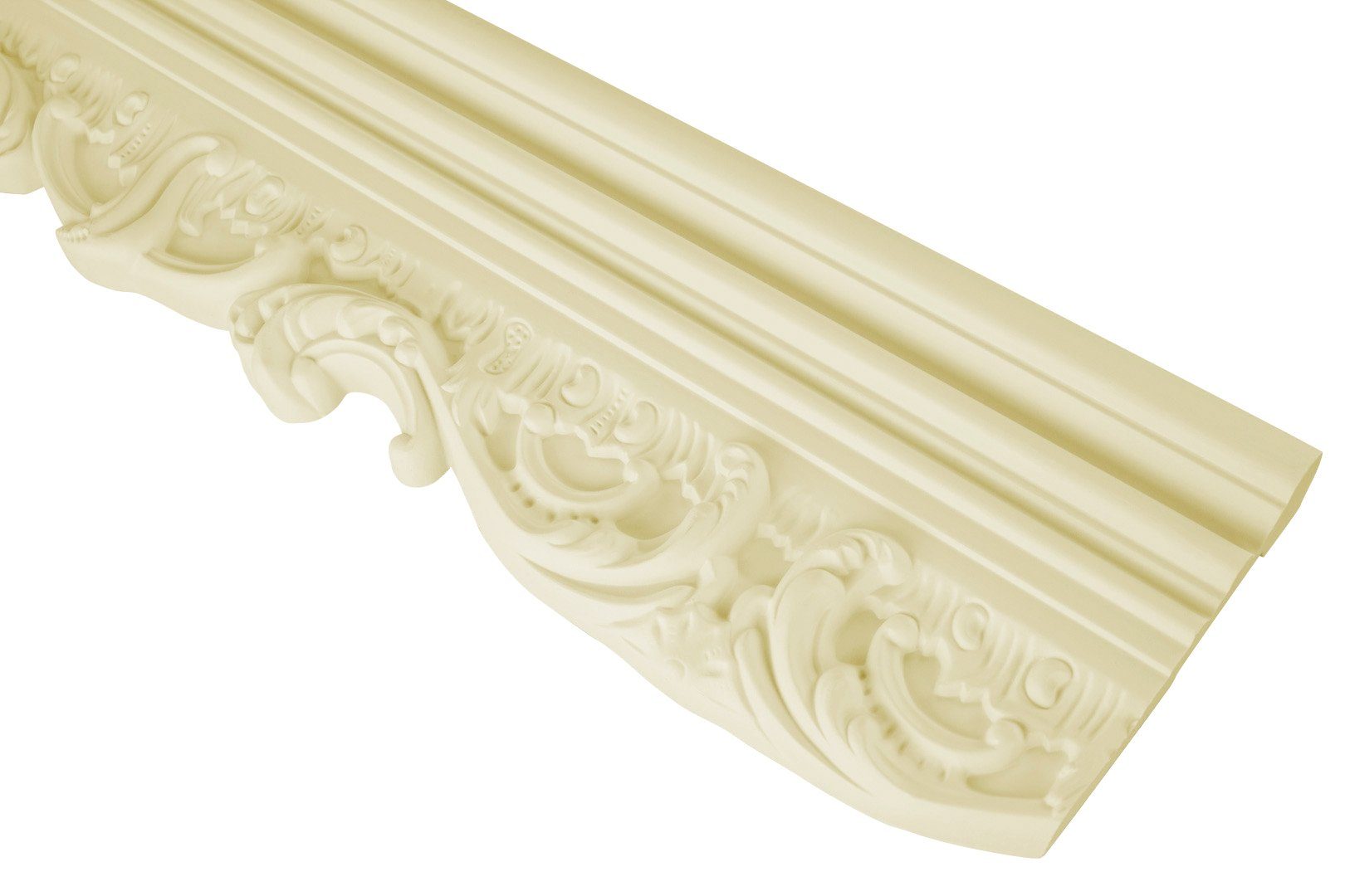 Mit Polyurethan erhalten Sie die optische Schönheit von traditionellem Stuck, aber ohne die damit verbundenen Nachteile. Es lässt sich am besten als "leichtes Holz" beschreiben. Sie erhalten eine stoßfeste und langlebige Alternative, die sich für jede Umgebung eignet, z. B. für Badezimmer, Küchen und Wellnessbereiche, da sie unempfindlich gegen Feuchtigkeit ist. Mit einer zusätzlichen Oberflächenbeschichtung, z. B. einer lösungsmittelfreien Imprägnierung, halten die Profile selbst jedem Wetter stand.