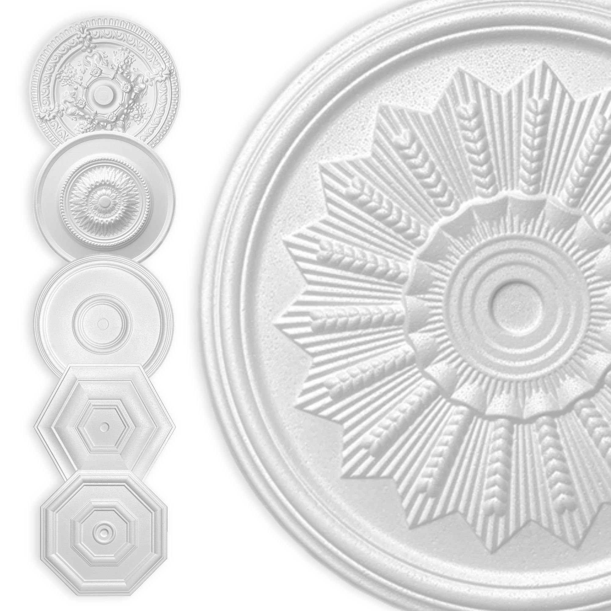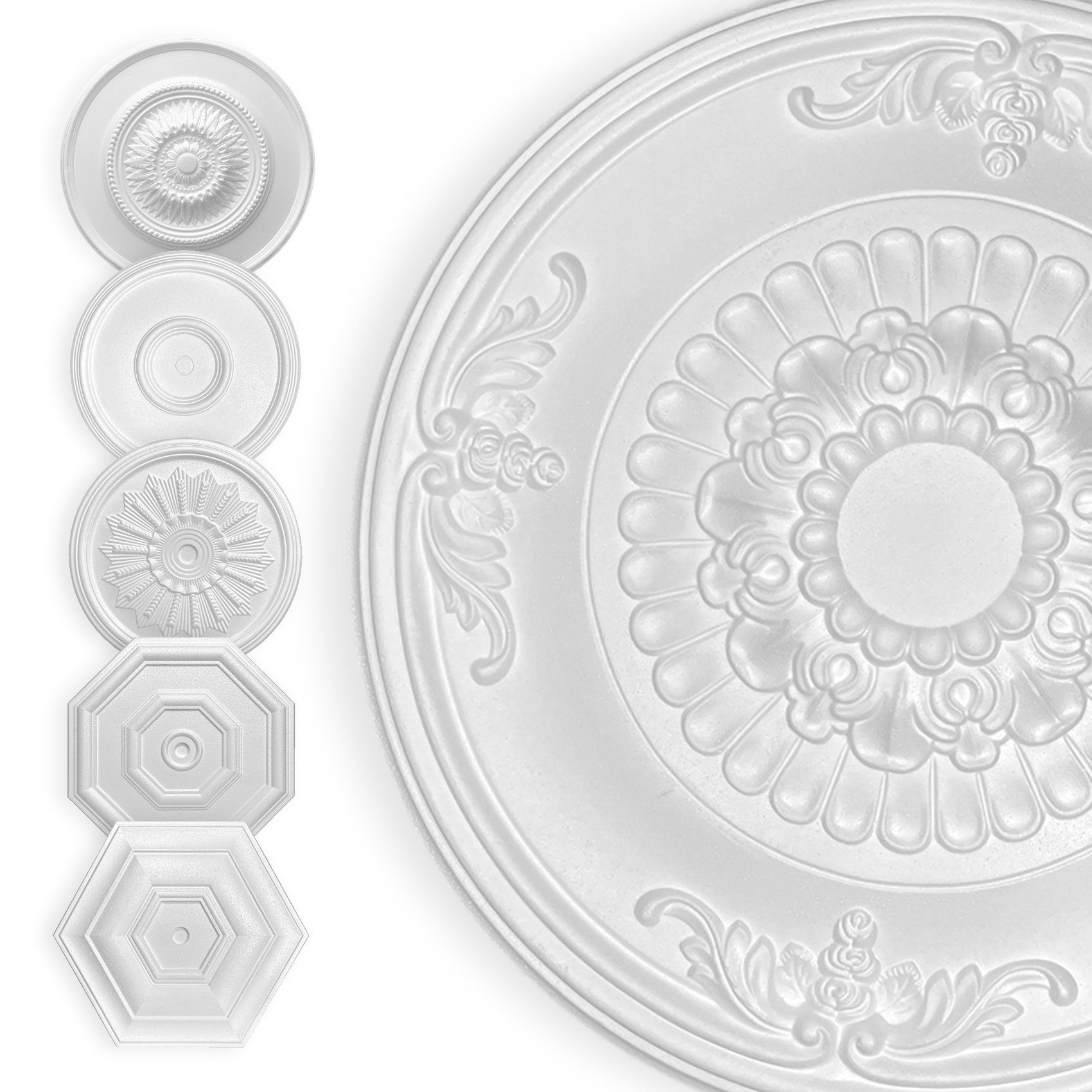 Von klassisch bis romantisch und von schlicht bis verschnörkelt: Unser Online-Shop bietet Ihnen eine große Auswahl an Stuckrosetten. Stöbern Sie in unseren Kollektionen nach Wand- und Deckenrosetten, die zu Ihren Räumlichkeiten passen. Unser Angebot richtet sich sowohl an Privatpersonen als auch an Gewerbetreibende und die Hotellerie. Darüber hinaus können Sie aus Wand- und Deckenrosetten in verschiedenen Größen wählen. Um eine Wandleuchte geschmackvoll in Szene zu setzten, sollten Sie idealerweise eine kleine Варианты wählen. Für die Decke kann die Rosette groß und rund sein. Sie können die Rosetten auch in Kellern und Feuchträumen verwenden.
