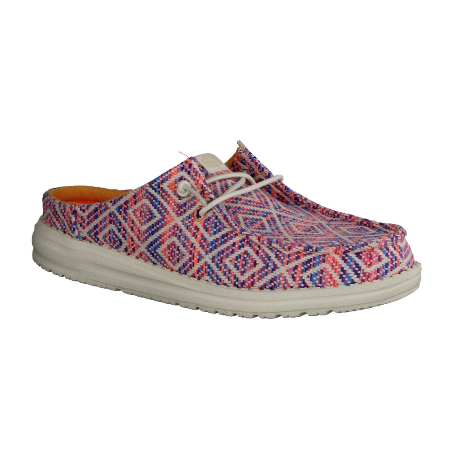 Der Hey Dude Wendy Slip Classic ist ein moderner und bequemer Damen-Clogs aus Textil. Er zeichnet sich durch sein raffiniertes Design und seine hochwertige Verarbeitung aus. Die Pantolette besteht aus einem farbenfrohen und weichen Textil, das für ein angenehmes Tragegefühl sorgt. Das Modell ist in verschiedenen Farben erhältlich und passt perfekt zu verschiedenen Outfits. Die Sohle bietet guten Halt und ist zugleich leicht und flexibel. Der Hey Dude Wendy Slip ist ein idealer Begleiter für den Sommer und sorgt für ein entspanntes Gehen und Stehen den ganzen Tag über.
