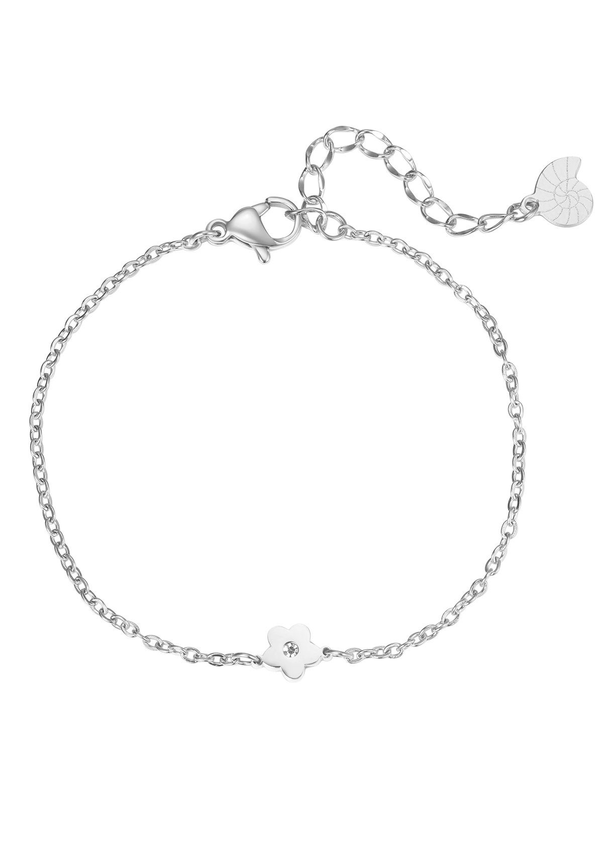 Edelstahl Armband mit einem Gänseblümchen Anhänger, geschmückt mit Zirkonia. Wasserfestes Armband, das Sie beliebig kombinieren können - sowohl zu Casual als auch zu eleganten Outfits. Sie können es solo aber auch in Kombination mit anderen Armketten tragen.