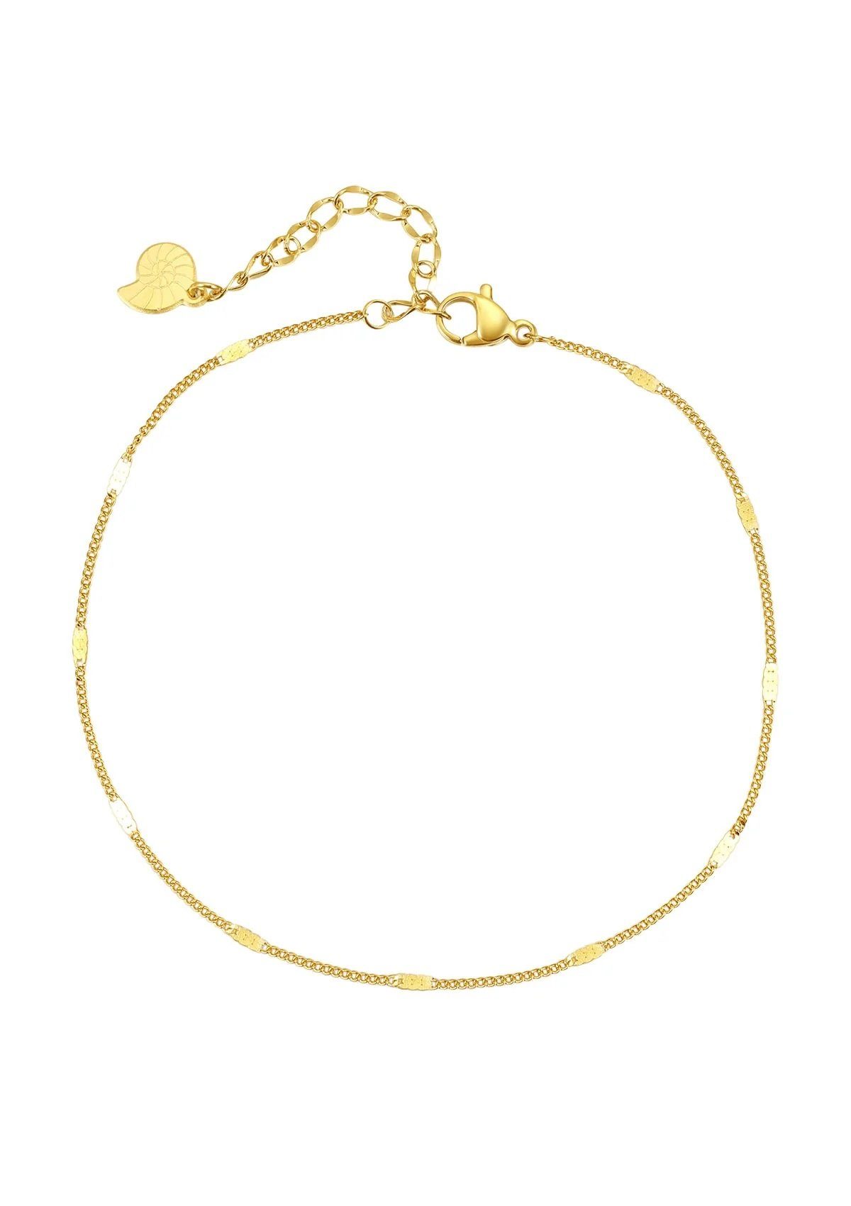 Ein zeitloses und vielseitiges Stück, das Tag und Nacht getragen werden kann! Ein Fußkettchen aus Edelstahl, das aus abwechselnden Abschnitten von Panzerkettengliedern besteht: regelmäßige, abgerundete Glieder und abgeflachte Glieder. Es wird in der hinteren Mitte mit einem ovalen Karabinerverschluss geschlossen und hat auch eine kurze Verlängerungskette (mit einem kleinen Muschelanhänger am Ende), die eine perfekte Passform ermöglicht. Всеin oder zusammen mit anderen Fußkettchen getragen, vollständig anpassbar, verleiht dieses Stück Ihrem Outfit sofort einen Hauch von Glanz - wir sind sicher, dass dieses Stück schnell zu einem Favoriten wird!