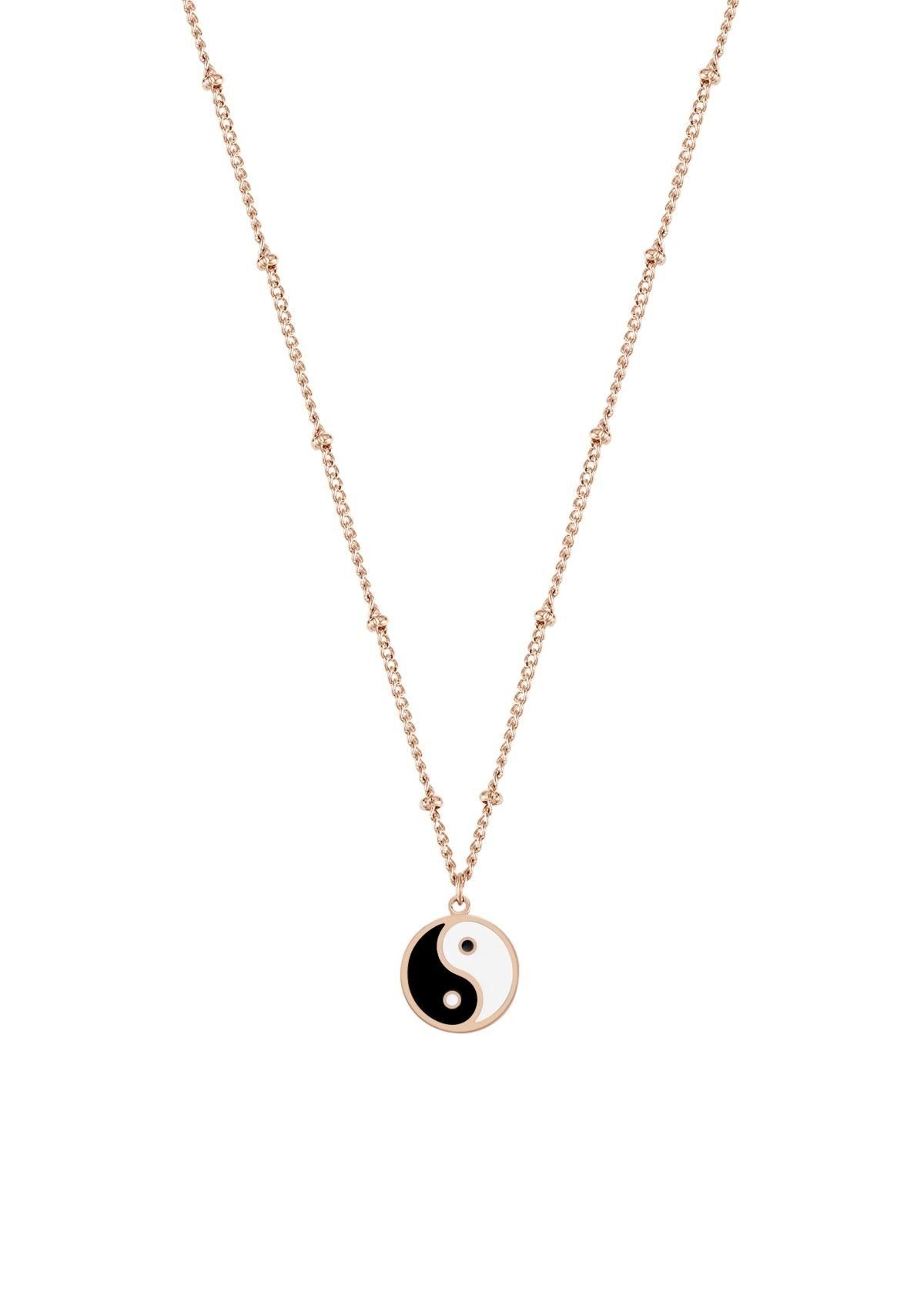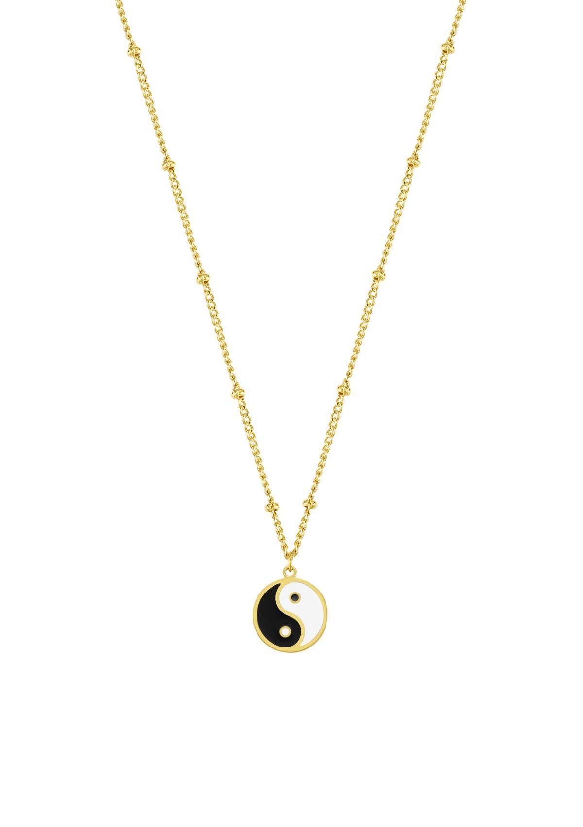 Ein Must-Have im Sommer! Deine Halskette aus Edelstahl mit einer dünnen Kette mit kleinen Metallperlen, die über die gesamte Длина verteilt sind, einem runden, schwarz-weißen Yin-Yang-Anhänger. Es verfügt über eine Verlängerungskette mit hängendem Muschelanhänger, sodass Du die Длина wählen kannst, die zu Dir und Deinem Outfit passt. Ein lustiges Stück, das allein oder in Kombination mit anderen Halsketten getragen werden kann..