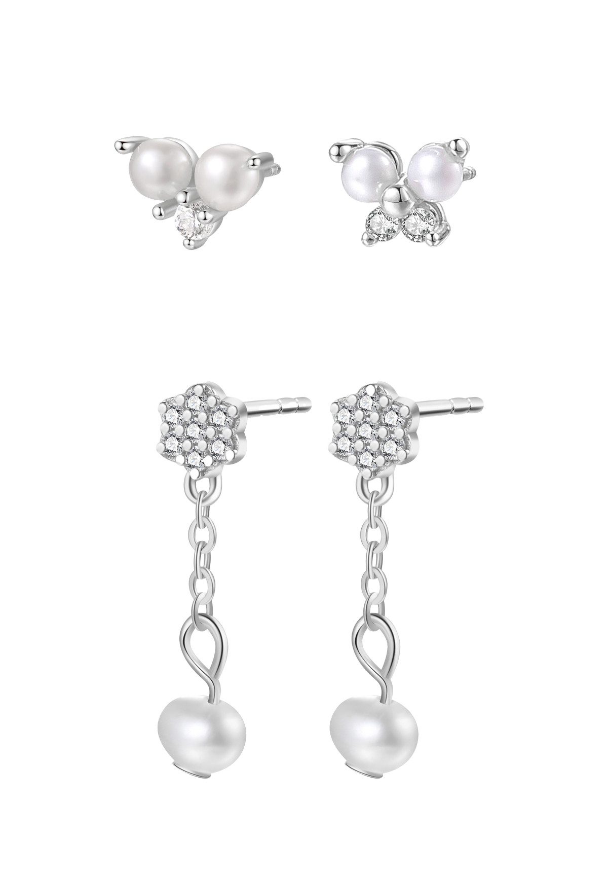 Applikationen | Ohrstecker mit Kettchen, Kettenohrringe mit Kristall, hängende Ohrringe, Blume Ohrstecker, Silber Ohrstecker in Schmetterlingsform, echte Perle, Schmucksteine |