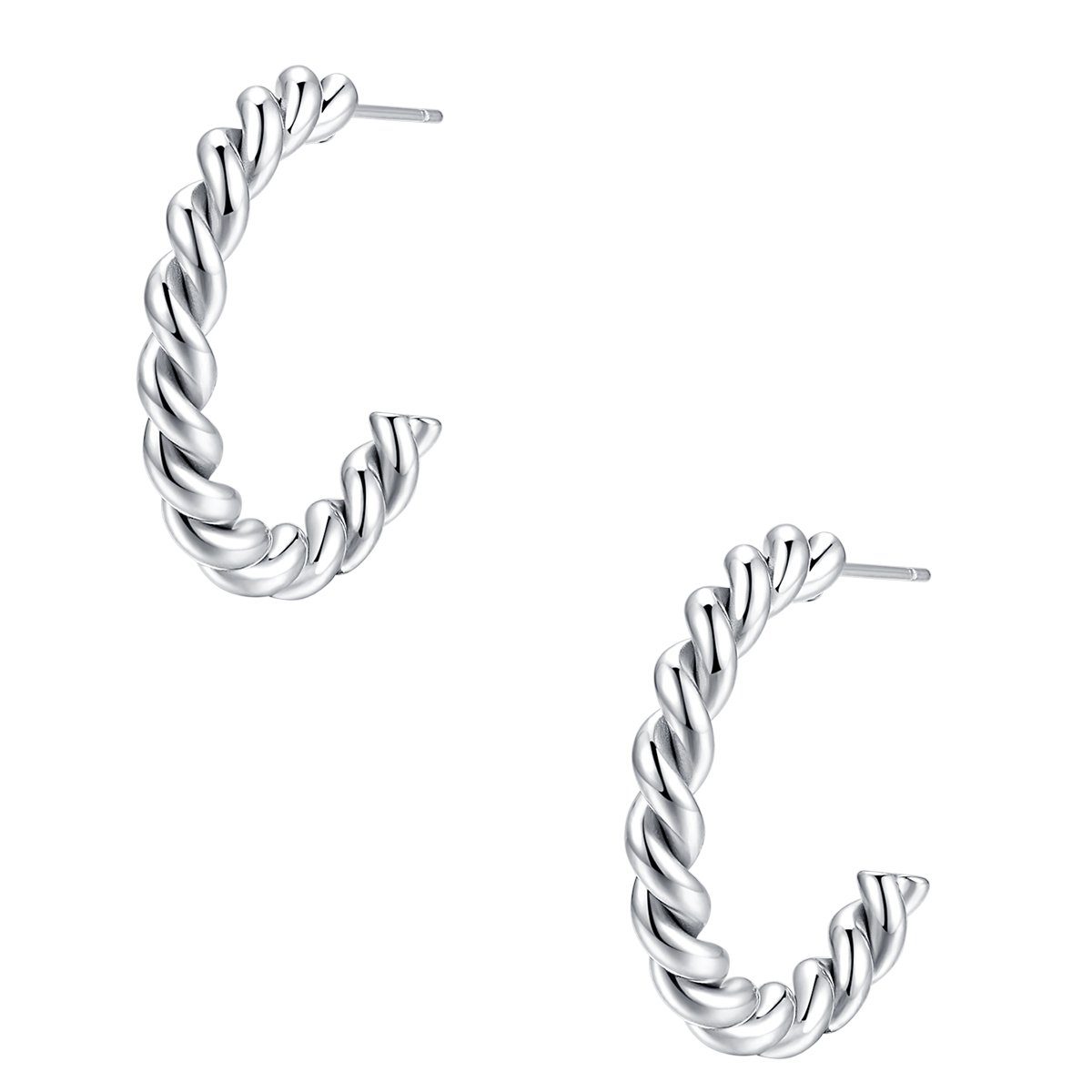 Diese schicken ¾ Edelstahl Creolen sind im trendy Kordel-Design. Sie sind modern dennoch zeitlos elegant und vielseitig kombinierbar und können zu beliebigen Outfits getragen werden. Verschluss: Schmetterlingsverschluss.