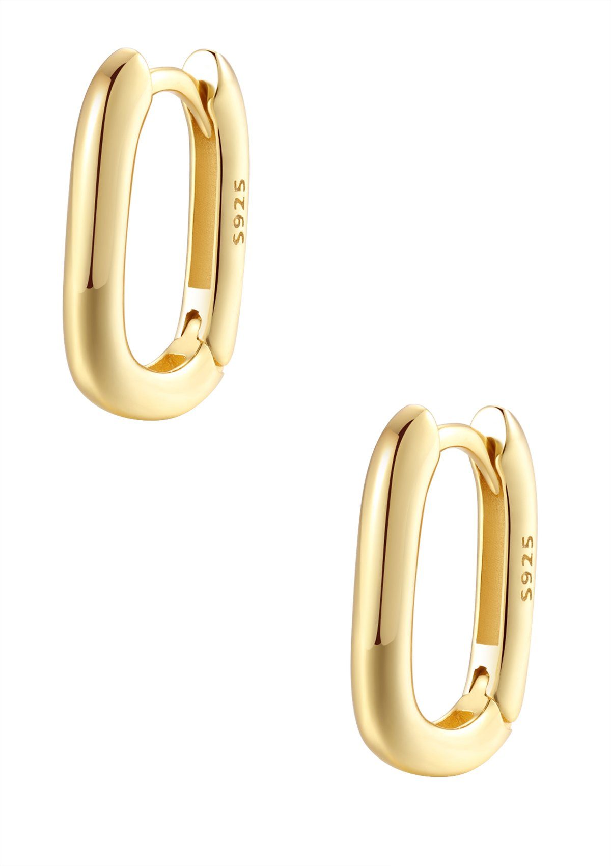 Ovale Huggies Ohrringe aus Sterlingsilber in Silber und Gold mit glatten, polierten Oberflächen und abgerundeten Ecken. Eine klassische und elegante Silhouette, ideal für täglichen Gebrauch.