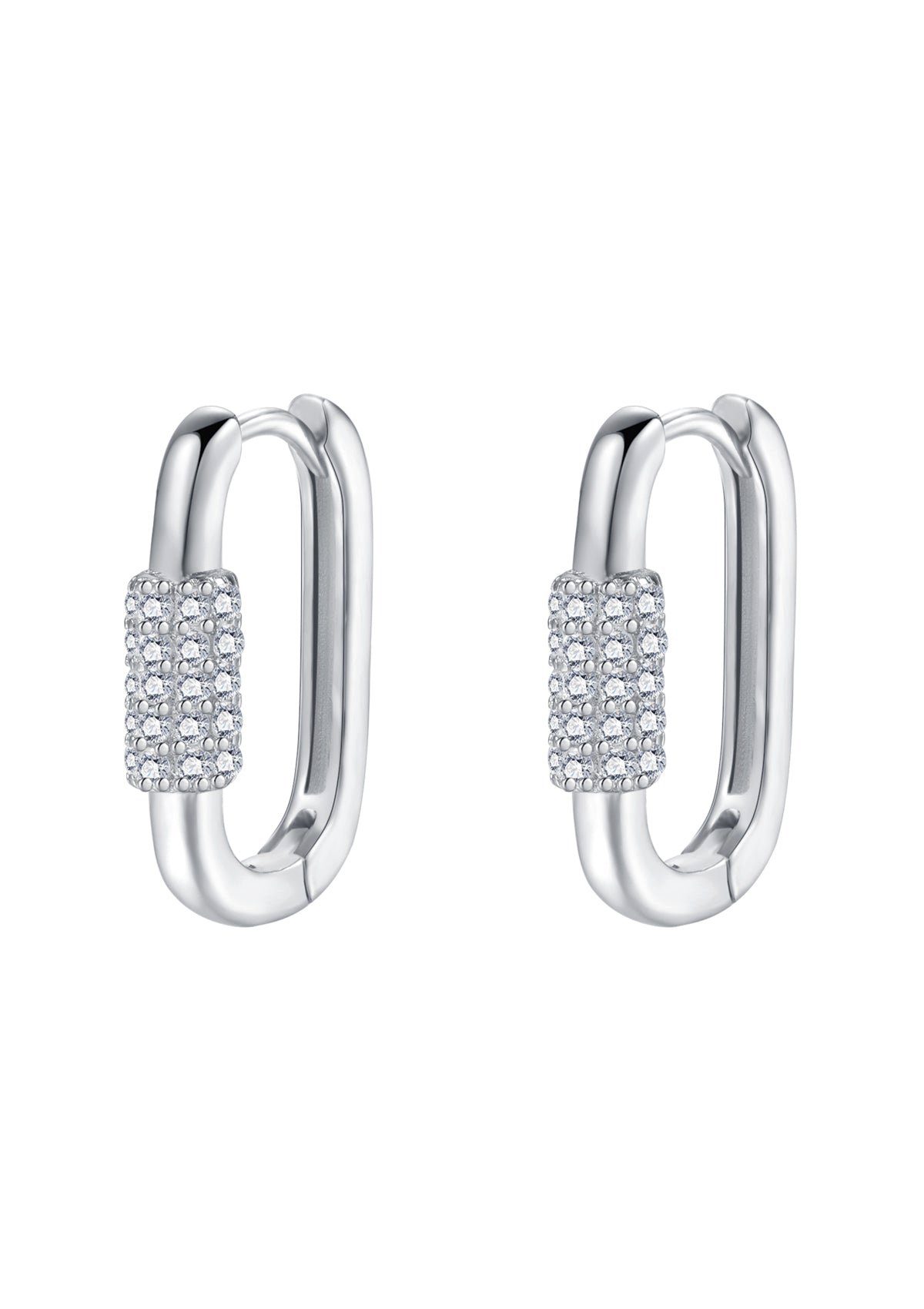 Ovale Ohrringe im angesagten Karabiner-Design geschmückt mit kleinen Zirkoniasteinen in Klarfarbe. Die Ohrringe sind schlicht und elegant und lassen sich mit beliebigen Casual und schicken Outfits kombinieren.