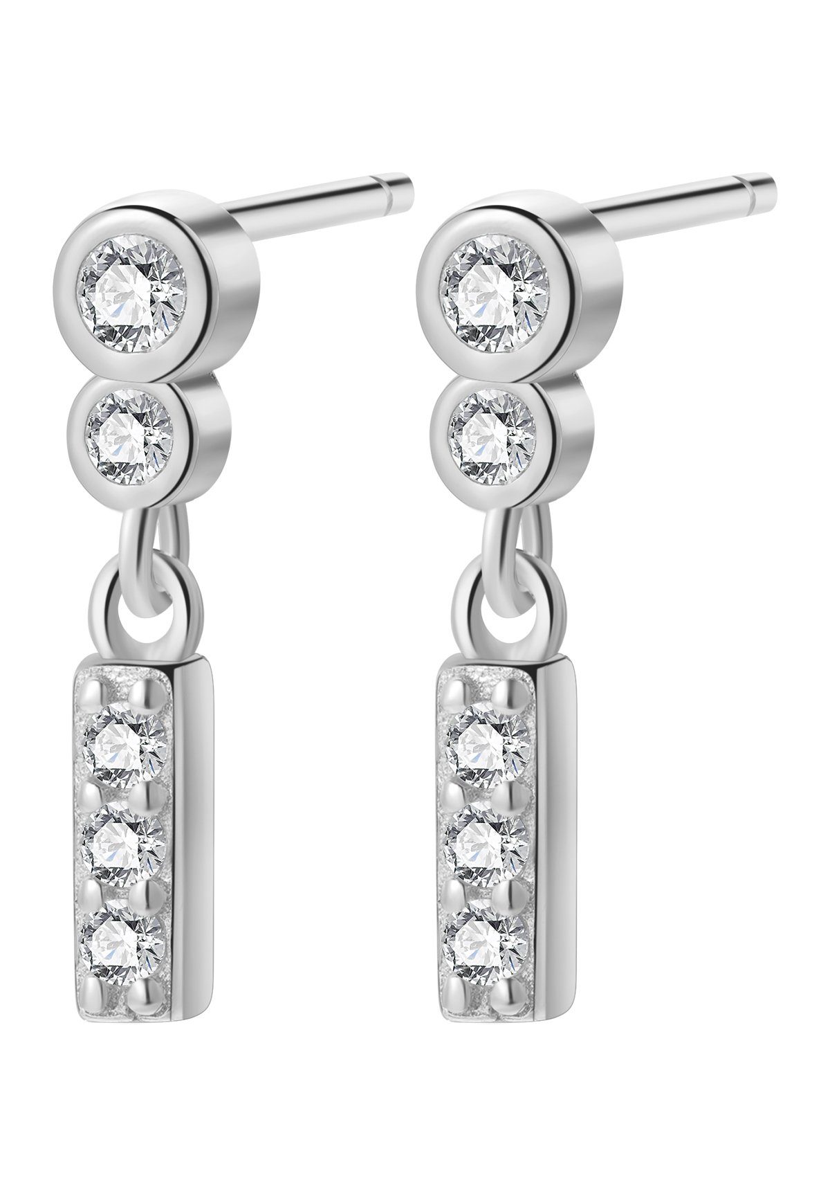Applikationen | mit Zirkoniasteinen verziert, baumelnder Stab Anhänger mit 3 Zirkonia verknüpft, Drop Ohrringe, Zirkonia in Brillantschliff, hängende Ohrringe, 2er Steine Ohrringe |